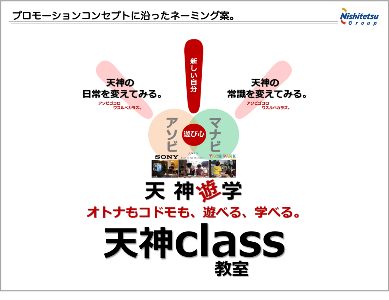 従って、ネーミングを依頼されると言うのは、戦略プランナーにとって、実は、めっちゃ光栄なことで、チカラの見せ所であったりする。今回のお焚き上げは、ネーミングプラン。国体通りのドンキの隣の1階にSonyのあるビルが「天神CLASS」と名付けられた時の企画書を公開。名付けって思いつきじゃないのだよって・・・。