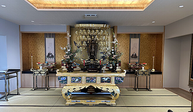 JR筑肥線の今宿駅から徒歩1分の、福岡銀行今宿支店北隣に建つ地上3階建ての同建物では、最上階に仏事や法要などを執り行う仏教会館を併設する。