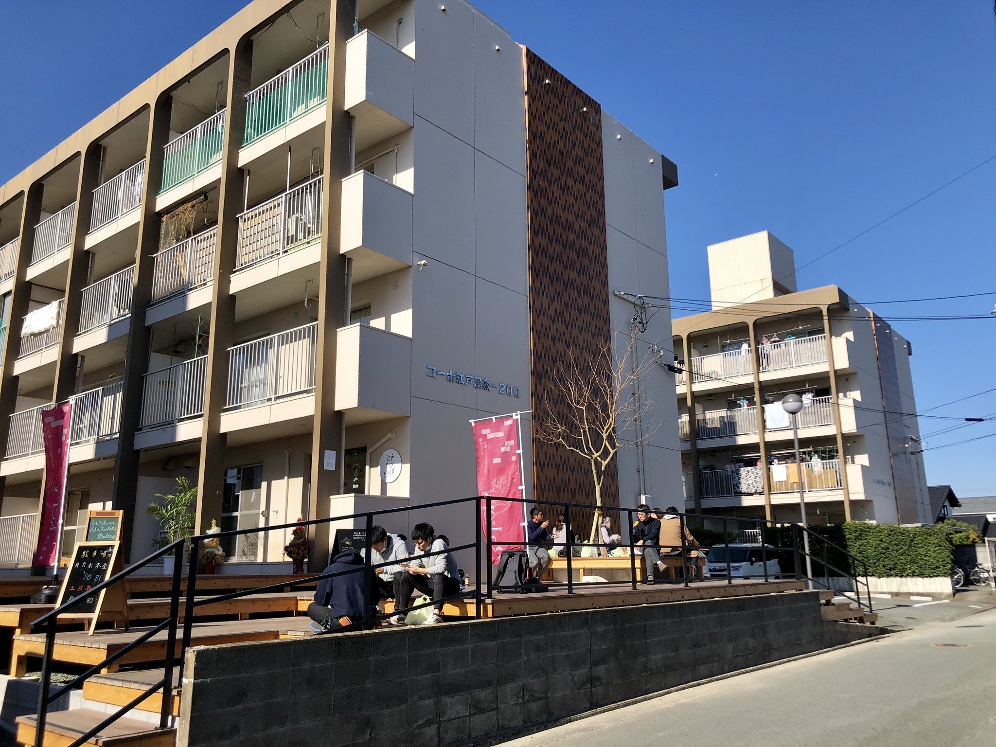 参加チームのうちの一つ「コーポ江戸屋敷(ビンテージのまち株式会社×H&A brothers/福岡県久留米市)」。団地ならではの広い敷地を活かし、入居者さんやまちの人たちと一緒に長期的なランドスケープデザインに取り組んでいる。