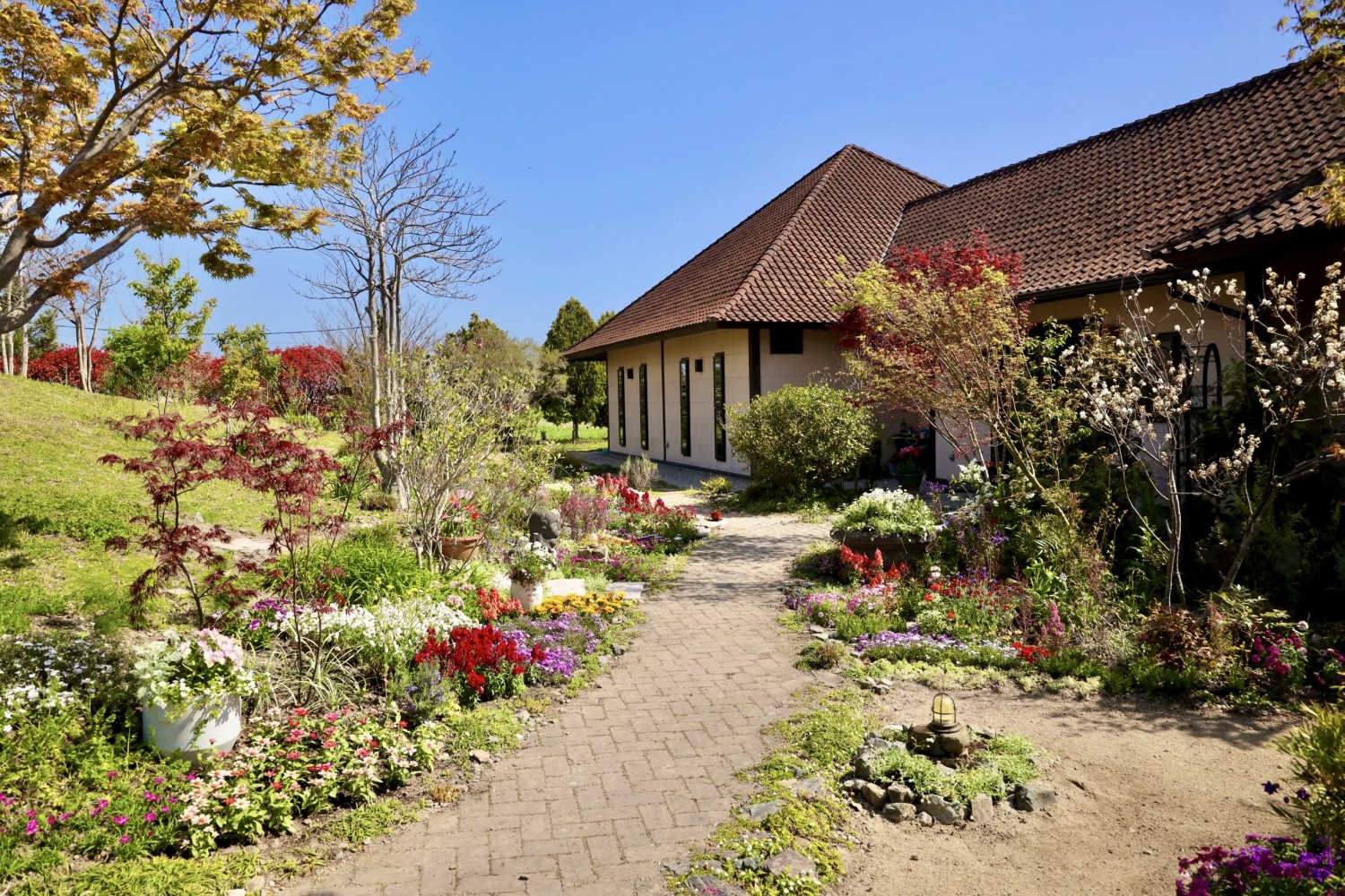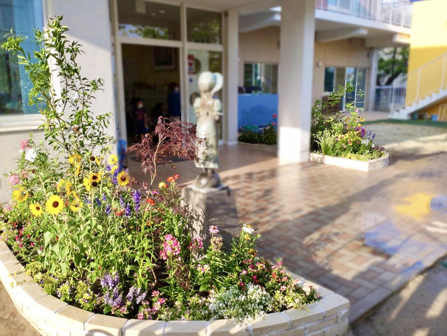 今回も花と緑でいっぱいにし、幼稚園らしいベージュ色のレンガ、果樹などを植え、お客様に喜んでいただけました!