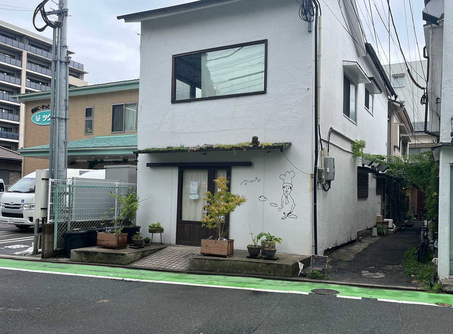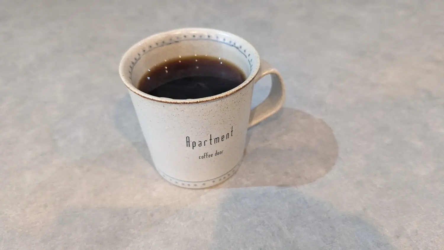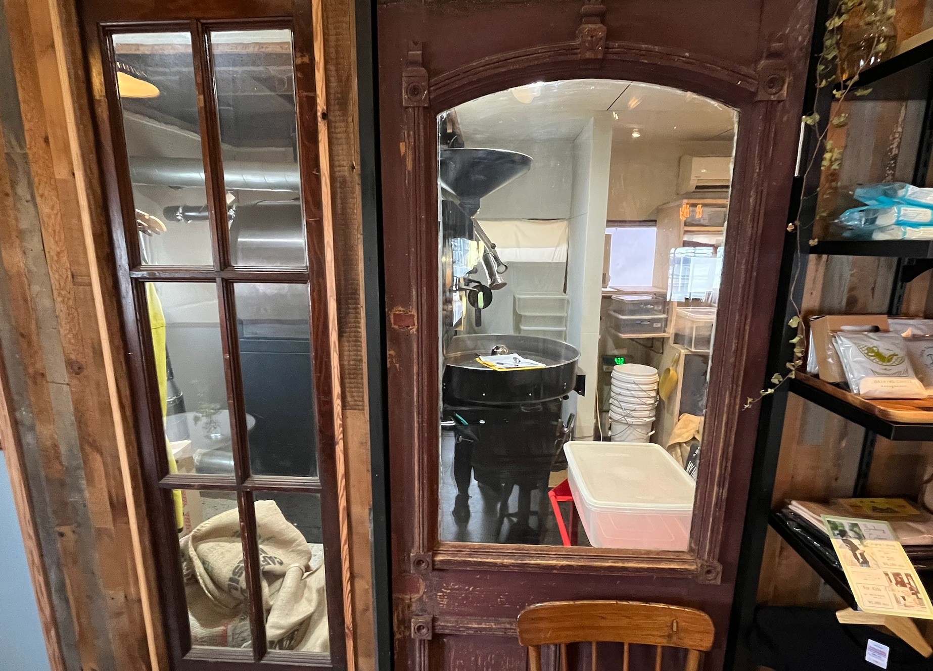 坂の上の住宅街にひっそりと佇む、赤茶色のシャッターが目印。六本松の路地裏にあるカフェ「Apartment coffee door」の2号店で、“焙煎兼カフェができる場所”としてここ小笹に2025年2月にオープンしました(焙煎室は準備中)。