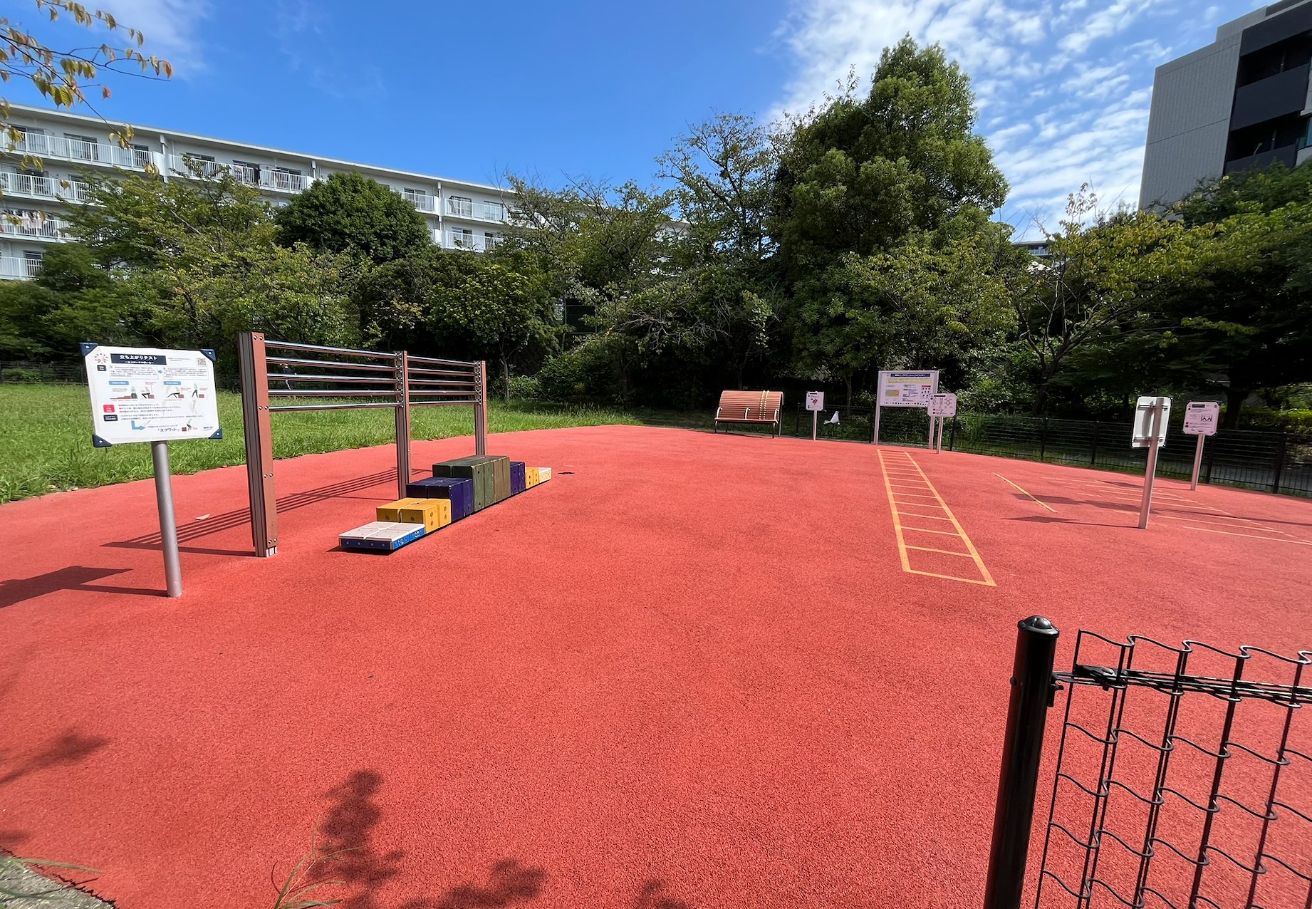 道の途中には石の広場や健康器具コーナーなども設けられ、ジョギングやトレーニングなどの運動に励む方もいらっしゃいました。