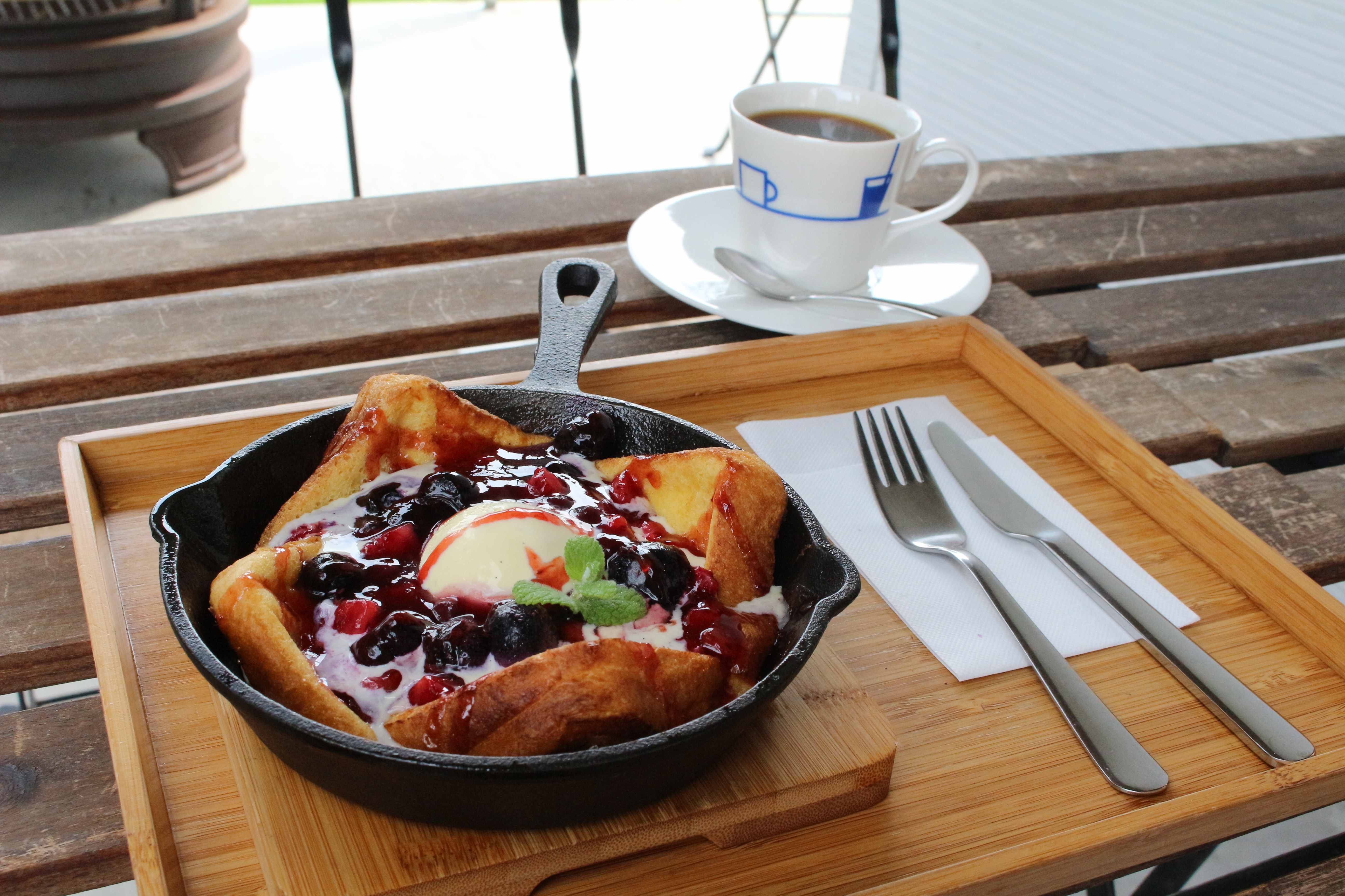 名物のコーヒーは先代が始めたサイフォン式を2代目店主が受け継ぎ、コーヒー豆も当時から変えていないそう。すっきりと飲みやすく、「ベリーソースフレンチトースト」(1,100円)などの自家製スイーツとの相性も抜群!