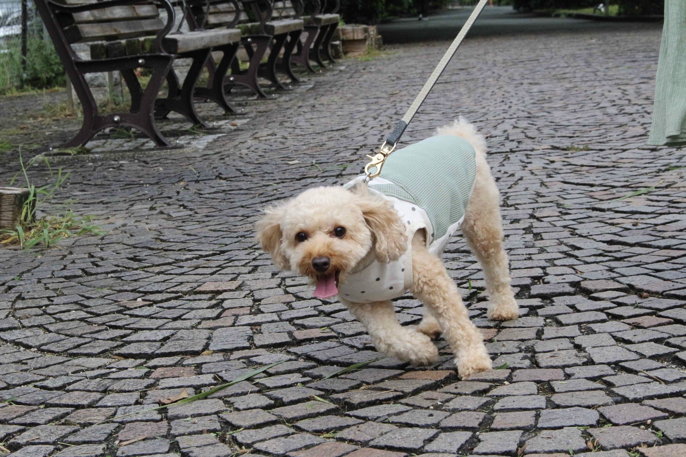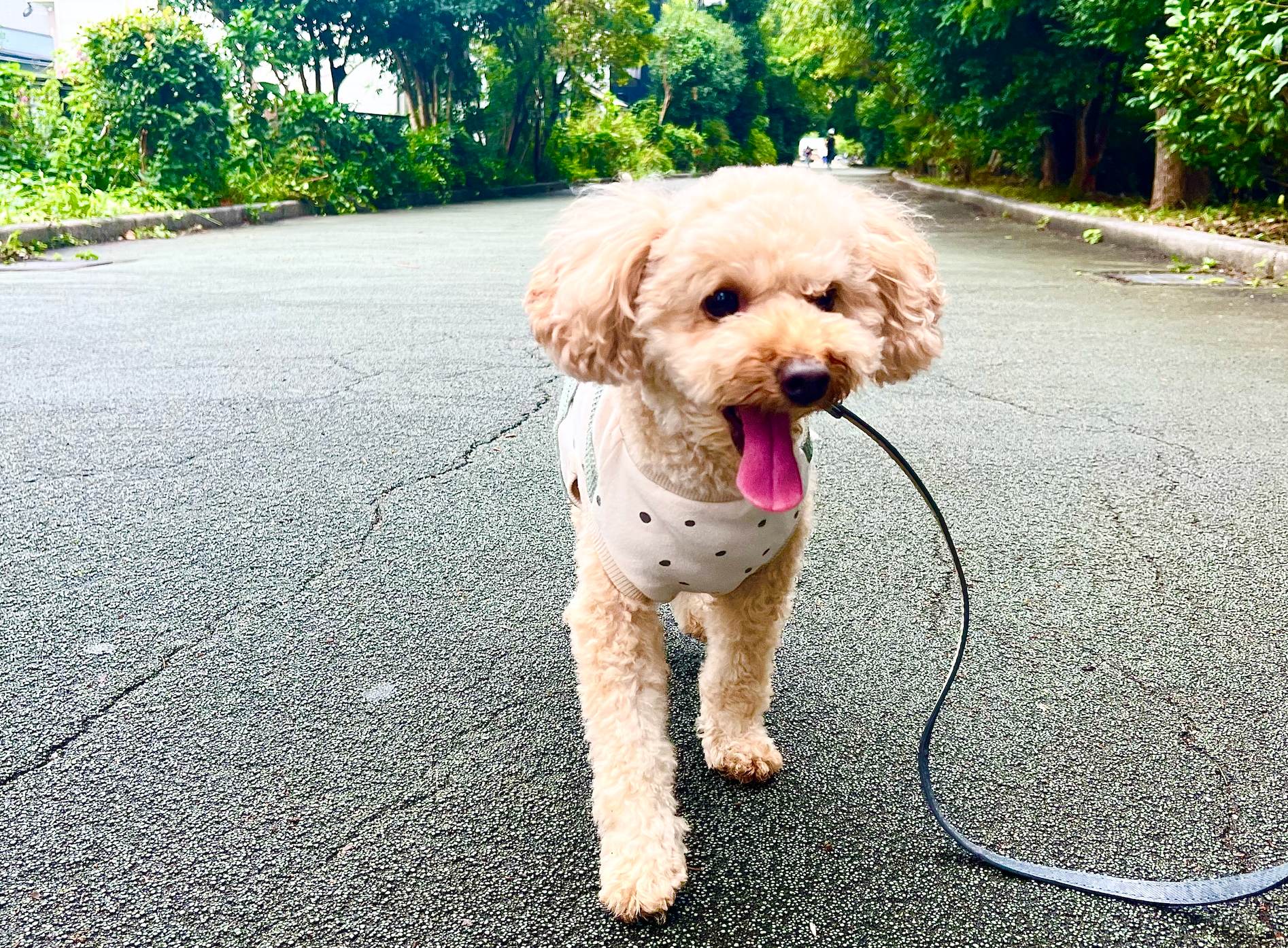 今回一緒にお散歩してくれたトイプードルの「ふくまる」くん(4歳)。人が大好きで、お散歩中もたくさん笑顔を振りまいてくれました♪