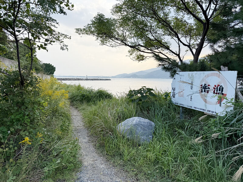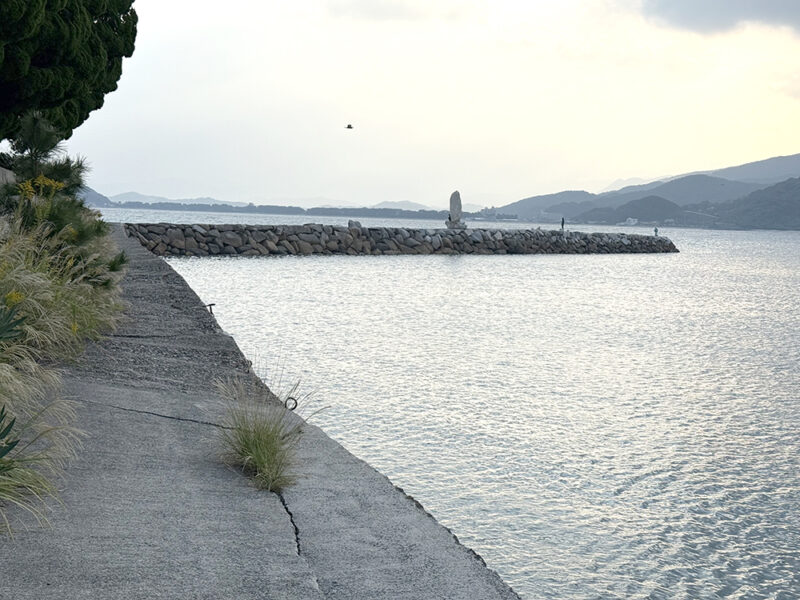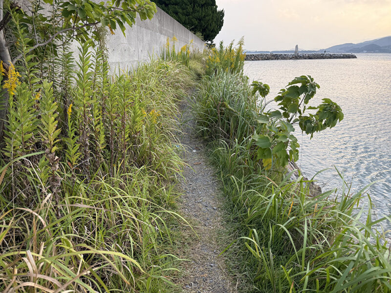 そのまま小道を進んでいくと、奥に防波堤が見えてきます。