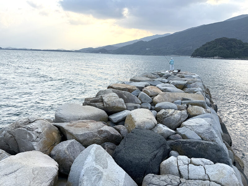 玄界灘の東南に向かって伸びている石積みの防波堤は潮の流れが良く、人気のポイントとなっています。
