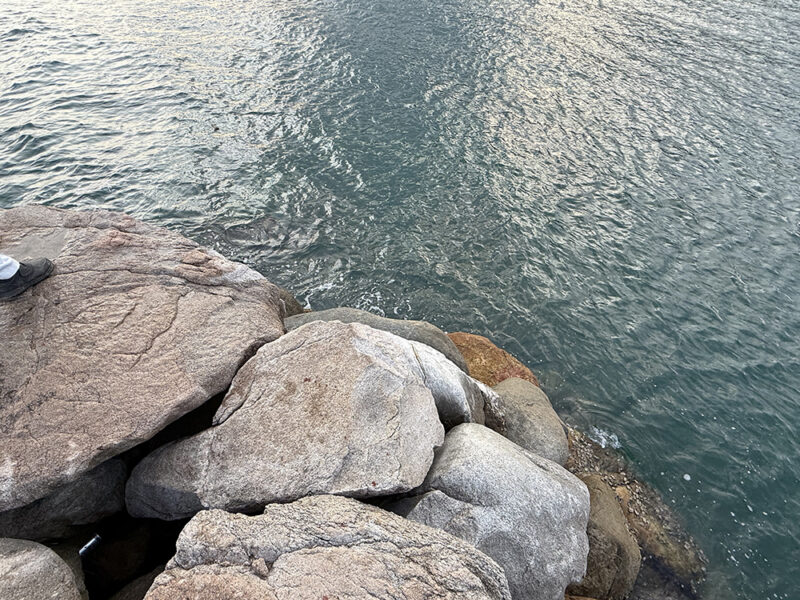 ちなみに堤防の逆側は大きな岩が点在する岩礁エリアとなっています。