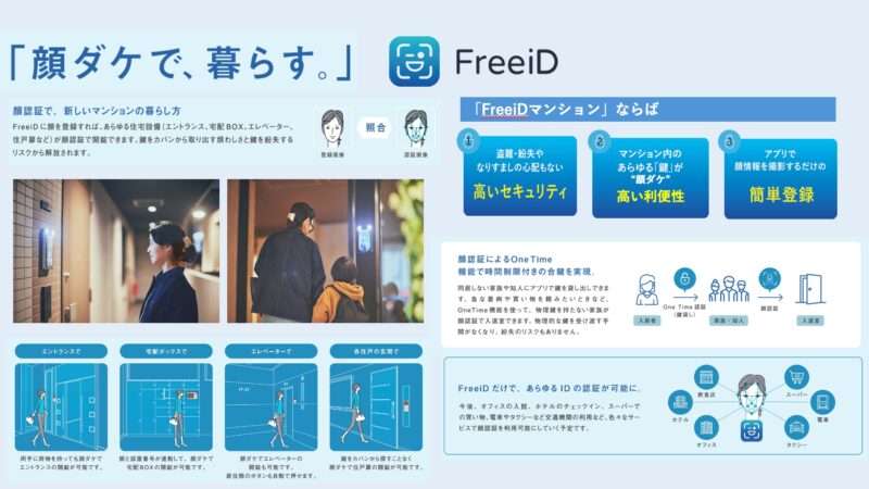 もちろん、多忙な単身世帯には必須の、不在時でも荷物を受け取れる宅配ボックスも備わっています。そして、自分の顔が鍵代わりとなって解錠できるエンクレストの新サービス顔認証システム「FreeiD」も採用されており、セキュリティは万全です。