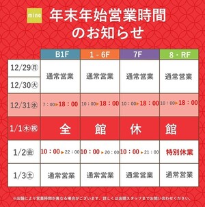 [1月1日(元日)以降は通常営業]