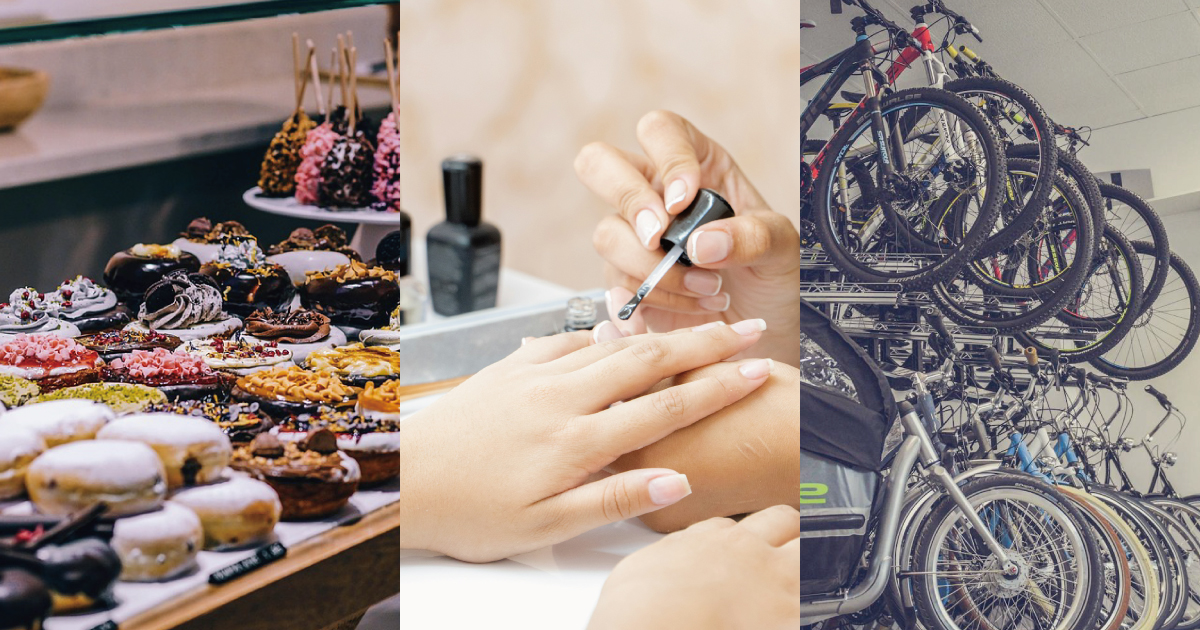 例えば、食物販、雑貨販売、美容サロン、自転車販売など