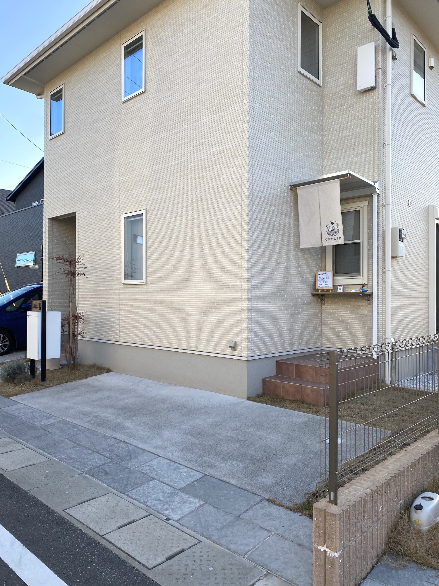 住宅街に入って少し奥に進むと…見つけました!一見、住宅のように見えますが、右端に風にたなびくのれんが見えます。
