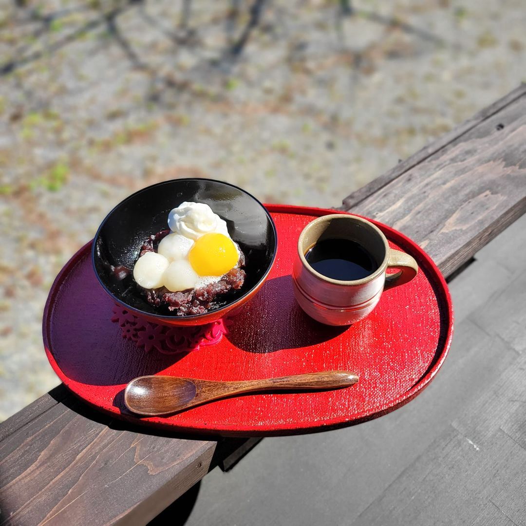 こちらは秋冬限定メニュー。心も体もほっと温まる、ぜんざいです。温かいあんこにコーヒーを注いで、混ぜて食べるという新感覚の一品です。