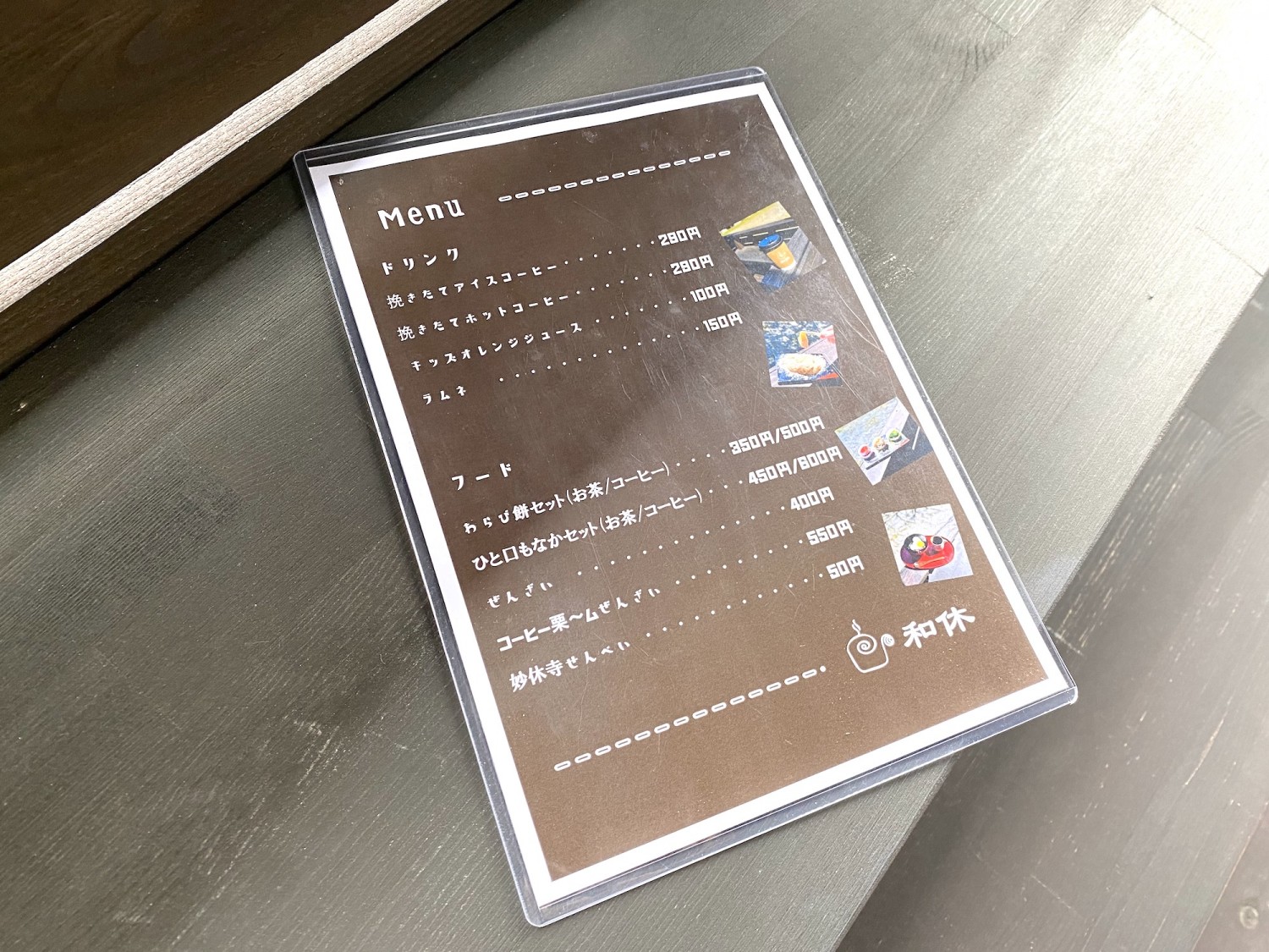 メニューは「森とコーヒー。」のコーヒー豆をつかったコーヒーや、キッズオレンジジュース、ラムネ。フードは和菓子を中心としたラインナップです。夏限定でかき氷なども販売されていますよ。