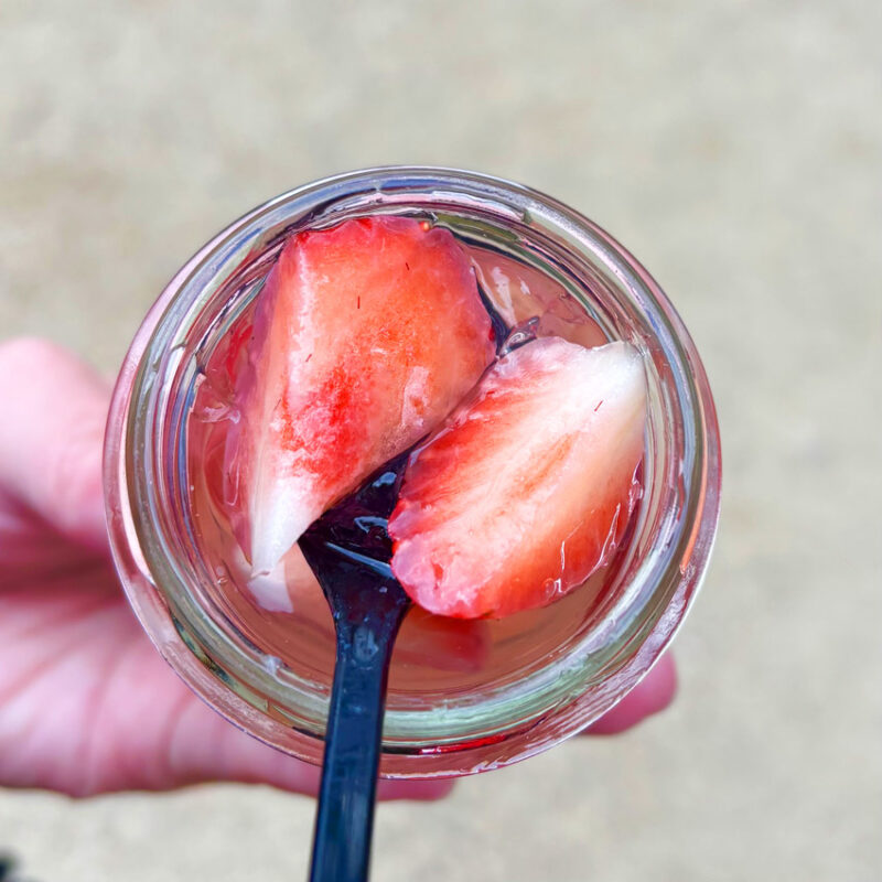 今回は、太宰府観光のお供にぴったり食べ歩きいちごスイーツ「あまおういちご団子」をいただきました。大ぶりのいちごと、こし餡のお団子が刺さっている見た目もすごく可愛い和スイーツです♪