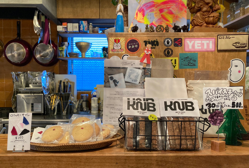 カウンターには、お店と親しいお菓子屋さんが作ったサブレとスパイスクッキーも並んでいます。お店のマスコットキャラクター「ロミッヒー」が描かれた可愛らしいサブレは、サクサクとした食感とバターの豊かな風味が絶品!