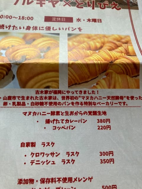 熊本県山鹿市にある「古木家」さんというパン屋さんと、福岡市のビストロ「ビストロノミーとりぴえ」さんがタッグを組んだお店です。