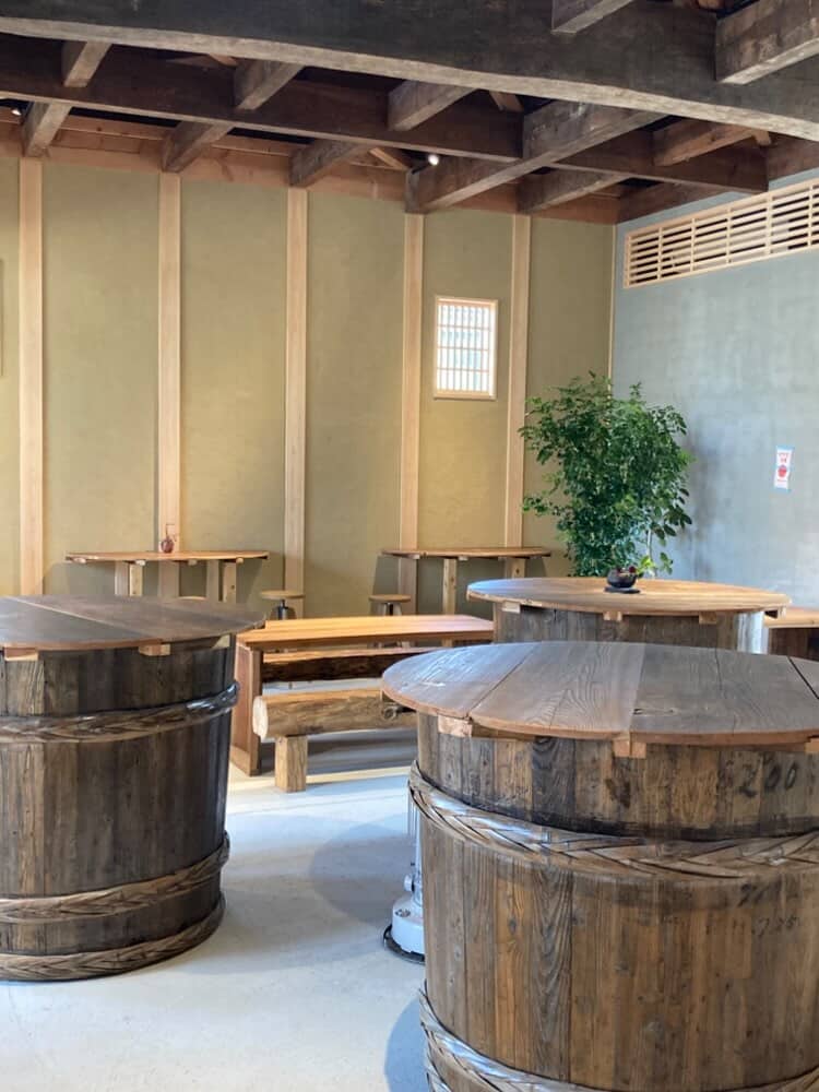 なんとも明るい光が差し込み、作り酒屋さんの高い天井を活かした開放感のある古民家バル(というと軽すぎますが。何かもっと、染み込んだ歴史と重厚感があります)の雰囲気を醸し出しています。オクトーバーフェストとか、行ったことないんですけど(ないんか〜い←すみません)そういうヨーロッパの「ビール片手に楽しく語らうイベント」そういうのを意図されているのかもしれない、と勝手に想像が膨らんでしまうような、広々としていて、ワクワクする非日常感があります。