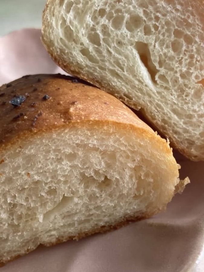 こちらのは後者のタイプですね、焼き戻すと表面がカリッと、中はフワッとしてます。