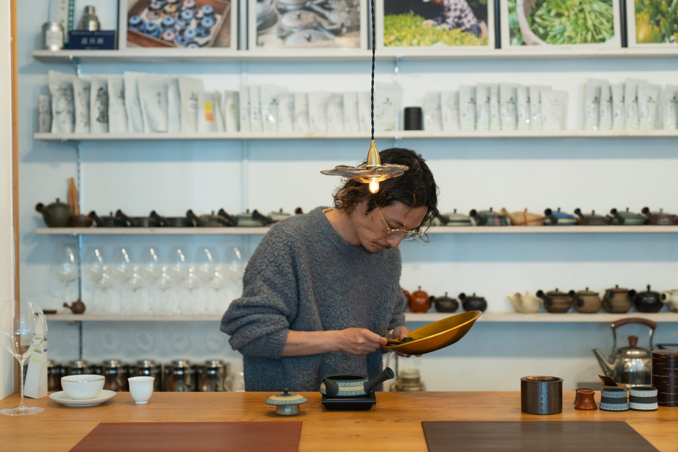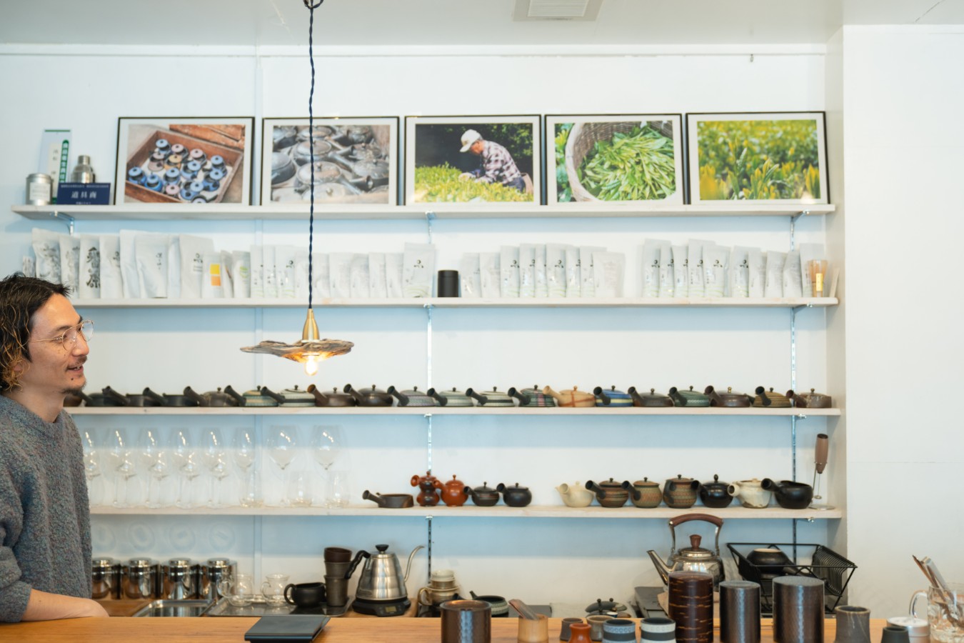 20歳頃から楽器店に勤める傍ら、いつか自分の店を持ちたいと考えるように。コーヒーや紅茶に親しむ中でお茶の世界に惹かれ、番茶をはじめとする個性豊かな日本茶の取り扱いをスタート。2010年頃から商いを始め、2019年9月に清川の現店舗をオープン。現在はシングルオリジンの煎茶やほうじ茶、抹茶、急須などを扱いながら、日本茶の魅力を国内外へ発信している。
