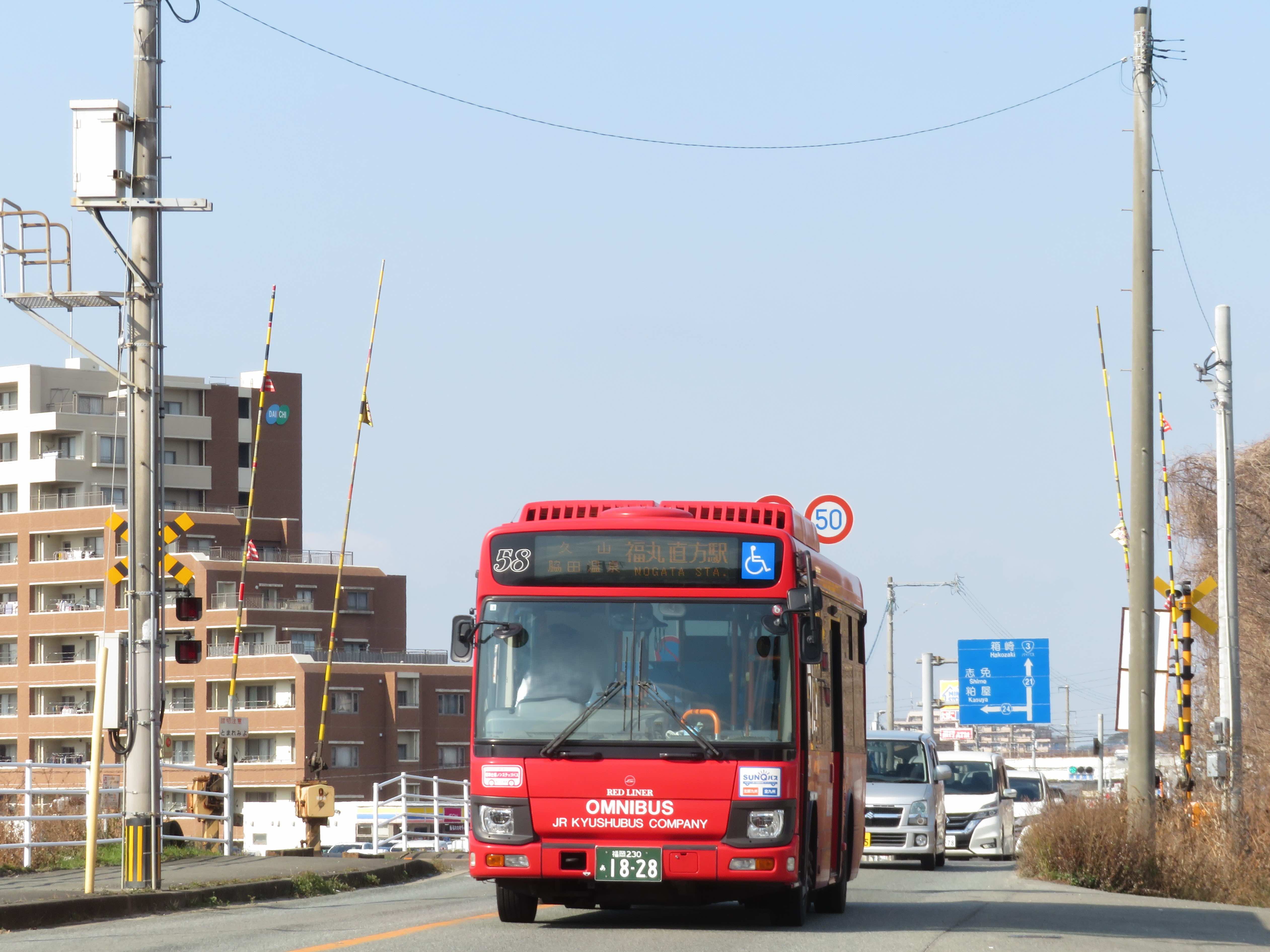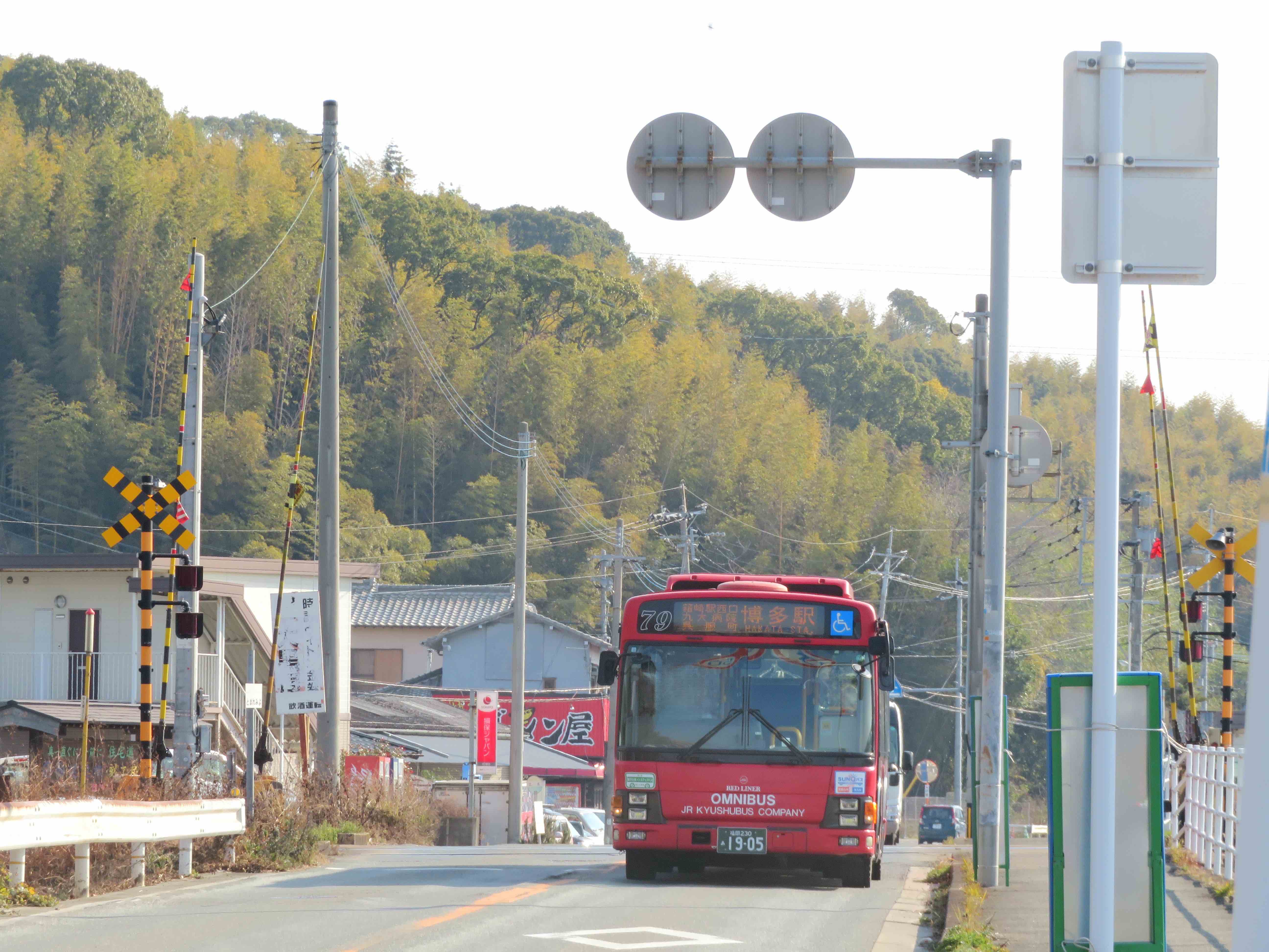 踏切を渡るバスが好きです。前回は西鉄バスの踏切信号をご紹介したので、今回はJR九州バスを。