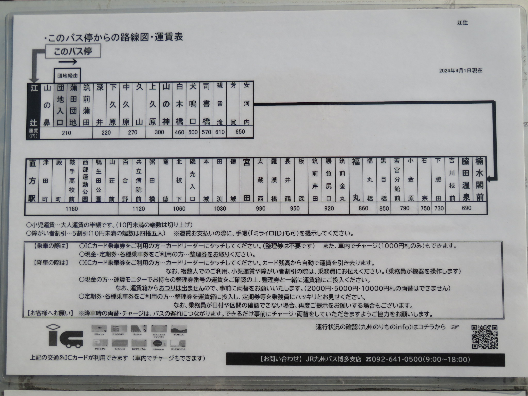 JR九州バス「博多駅」バス停から 直方線[本線] 福丸ゆきに乗車。約34分、490円。