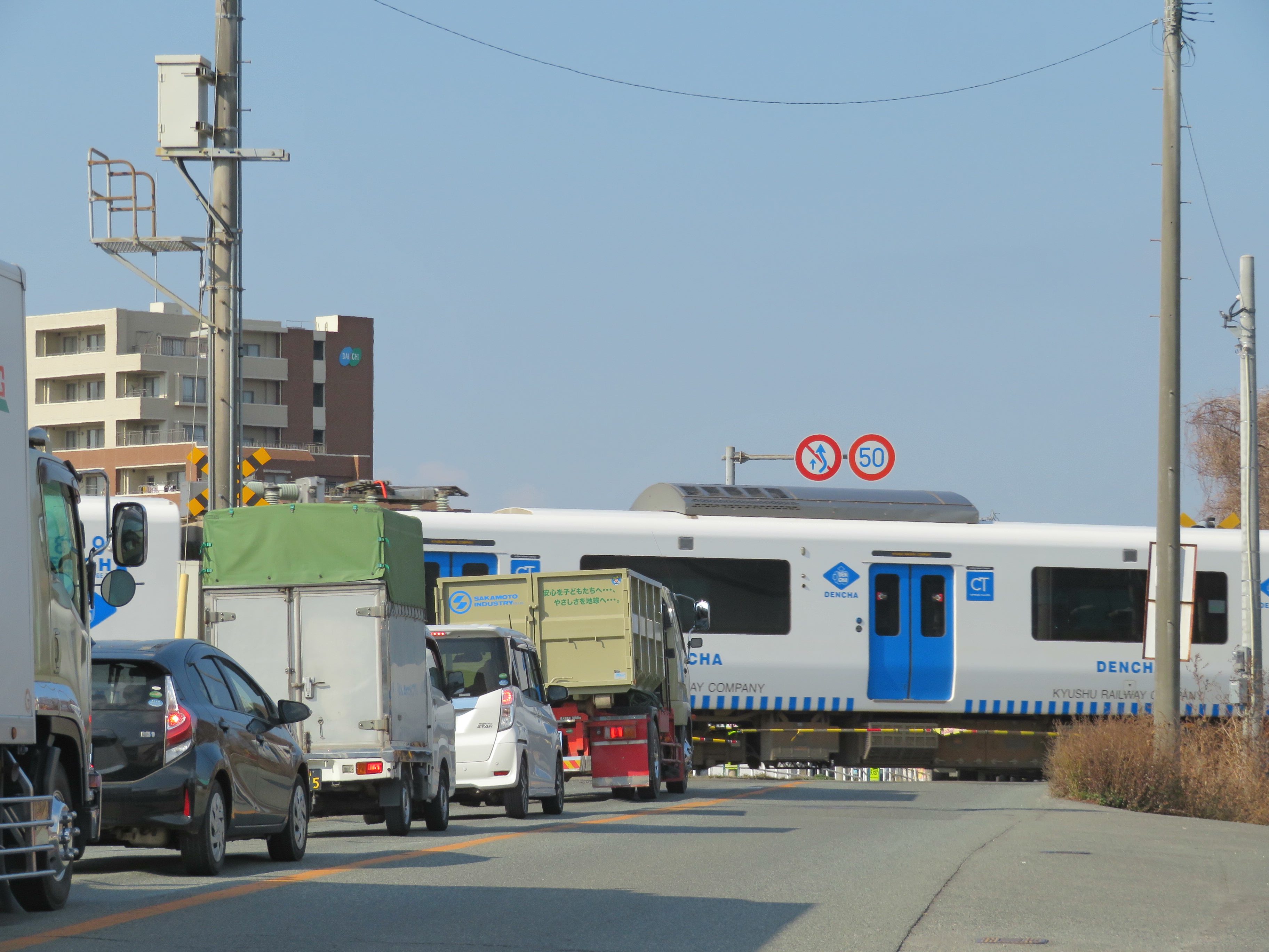踏切が閉じました。ここも香椎線なので、前回の雁の巣と同じく、DENCHA※がやってきます。