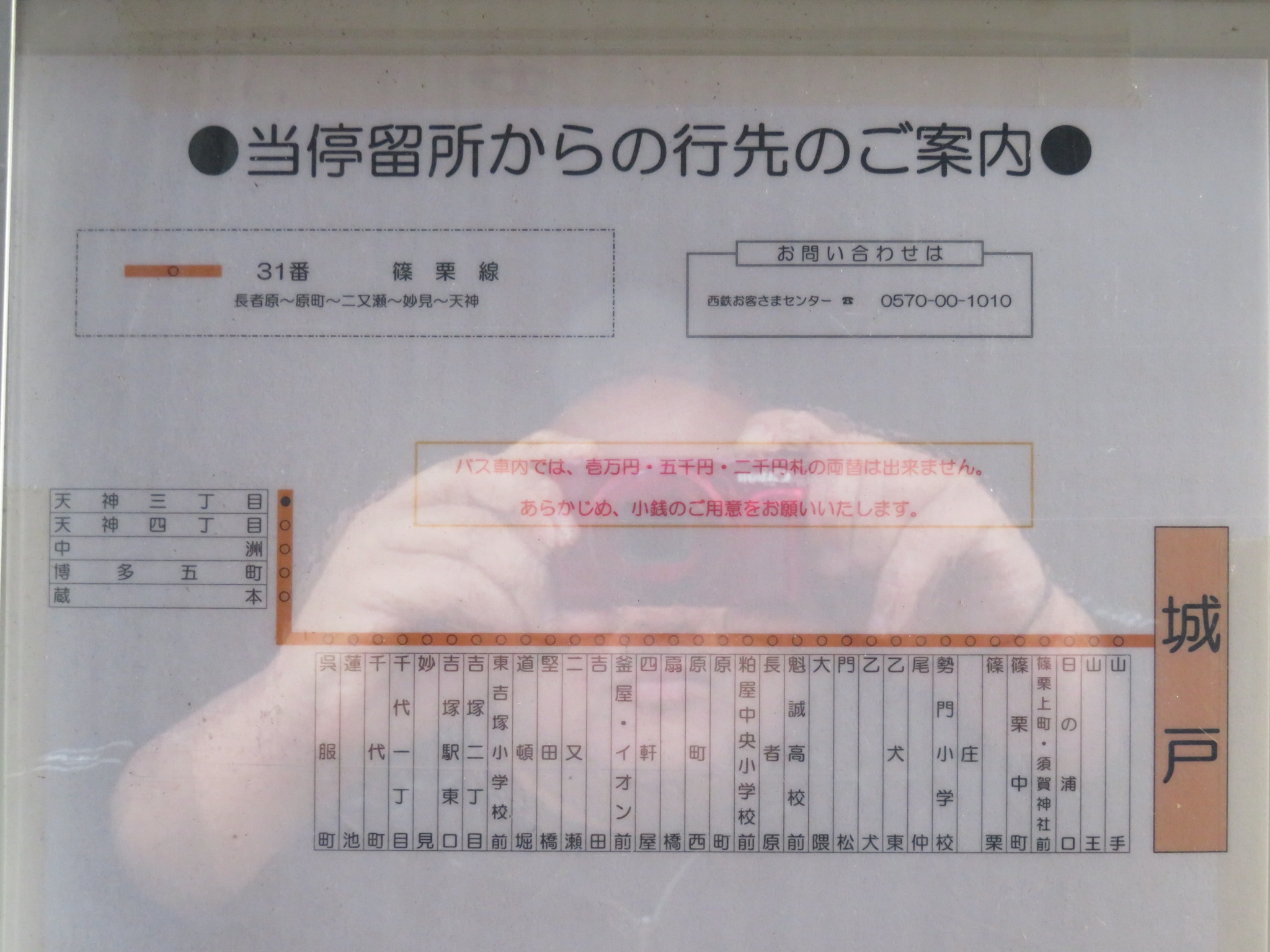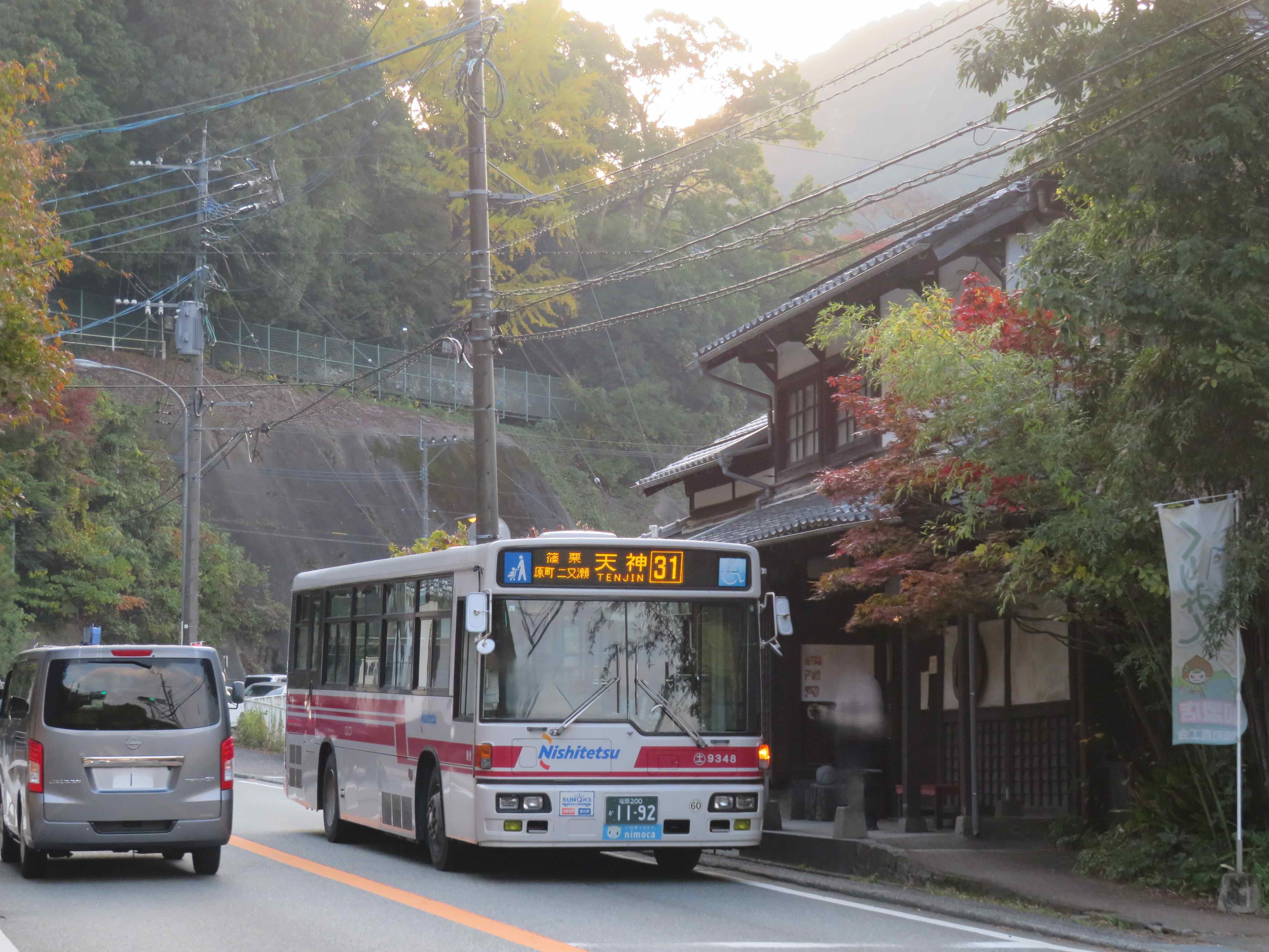 篠栗から長者原を経由して、旧国道201号線に沿う形で、天神まで。周辺が薄暗い中で撮影しているため、バス停訪問の妖怪が写り込んでおります。