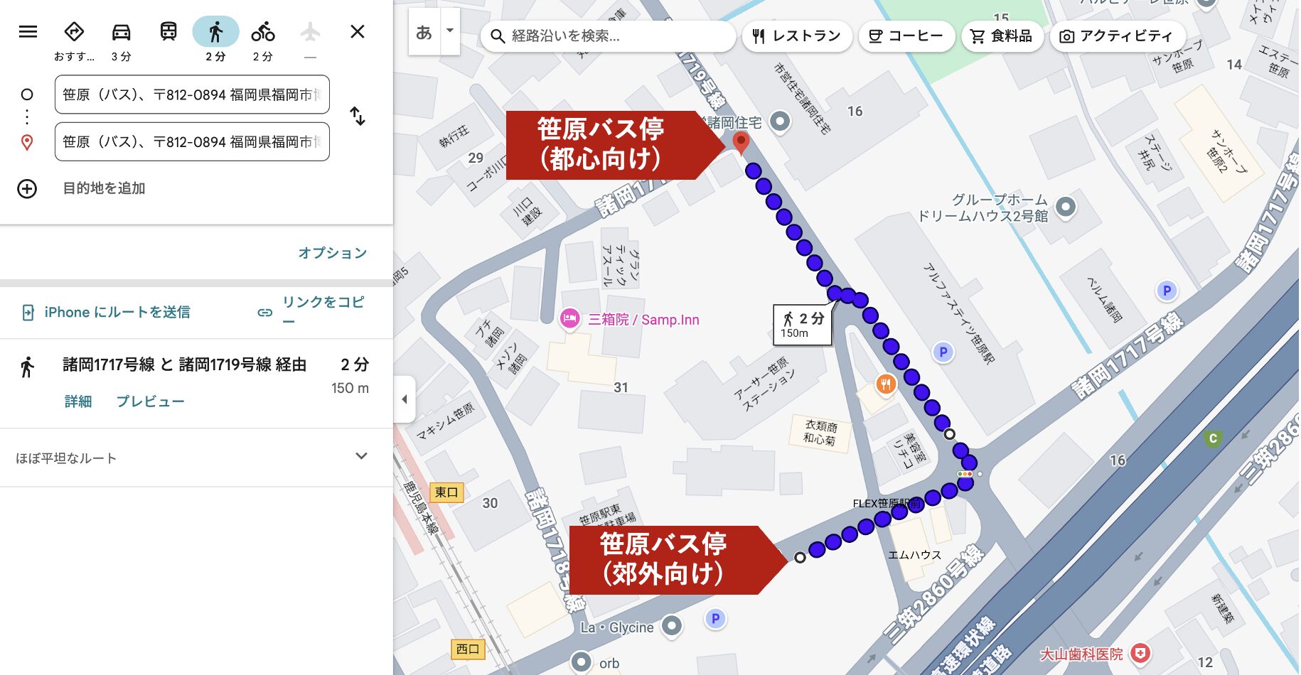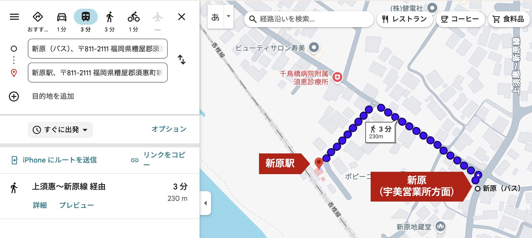 2つのバス停の距離を測ってみる