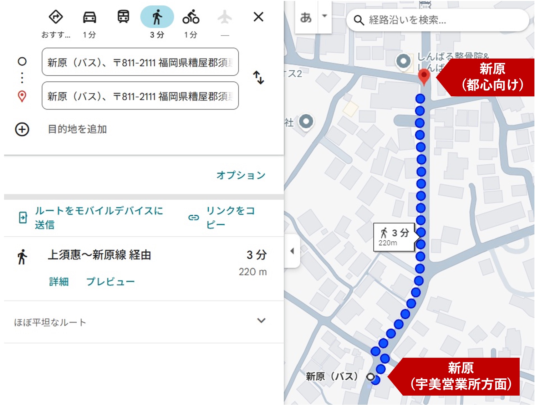 反対側のバス停が遠すぎる選手権1位?「新原」【福岡県糟屋郡】