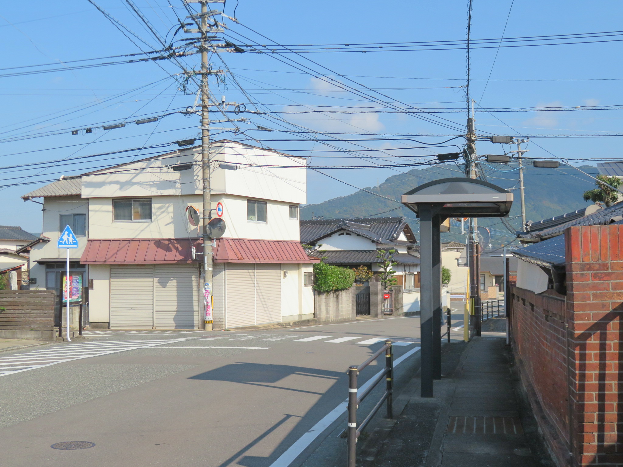 宇美営業所方面のバス停交差点を、