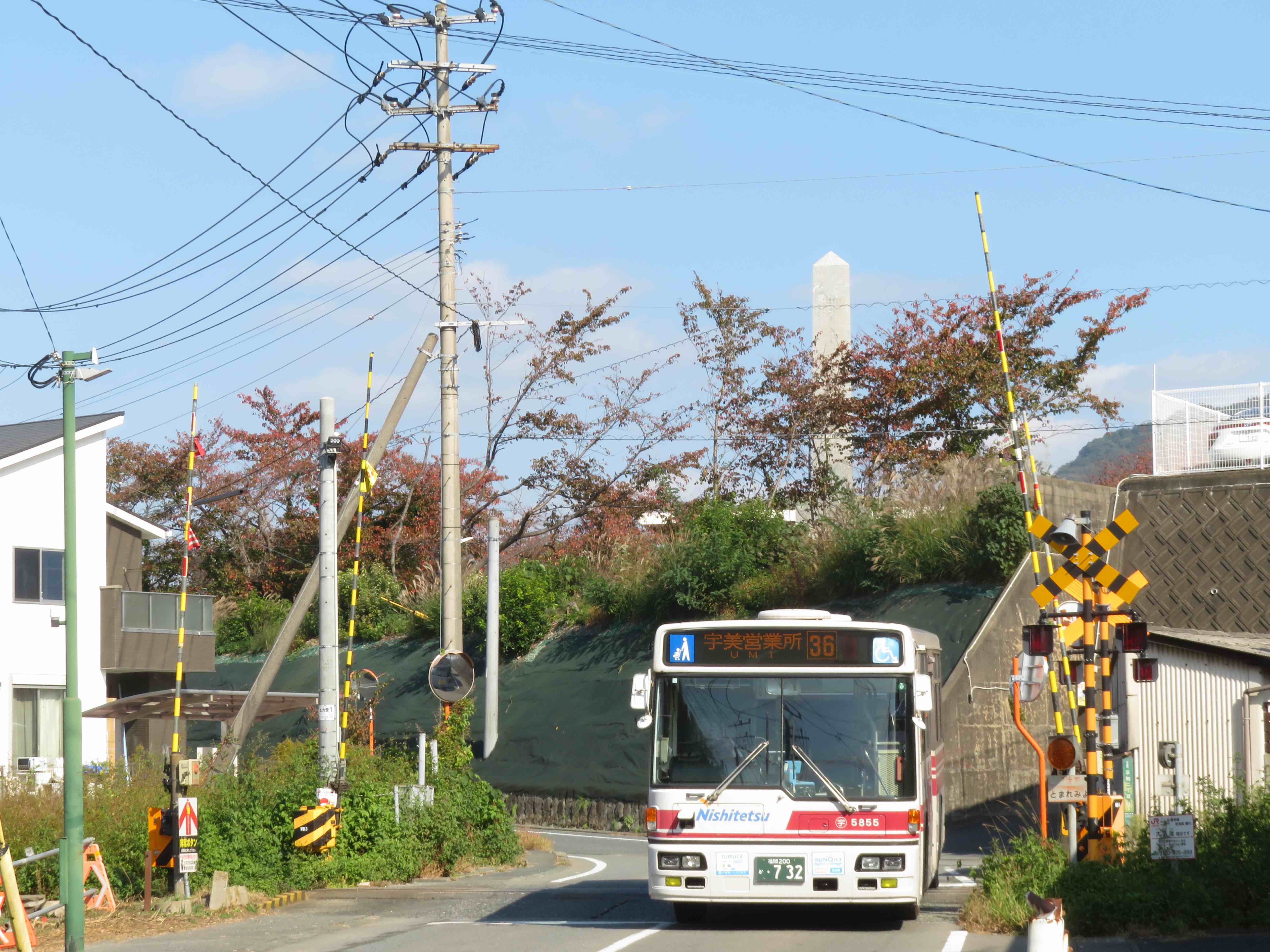 踏切を渡るバスシリーズ「江辻」【福岡県糟屋郡】