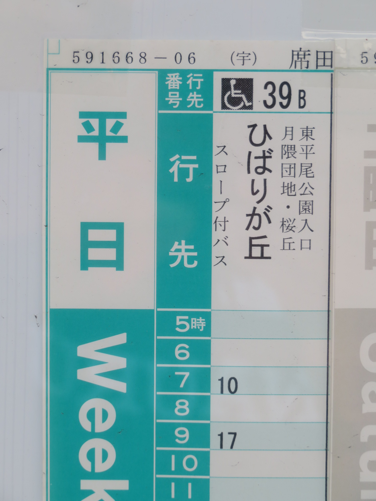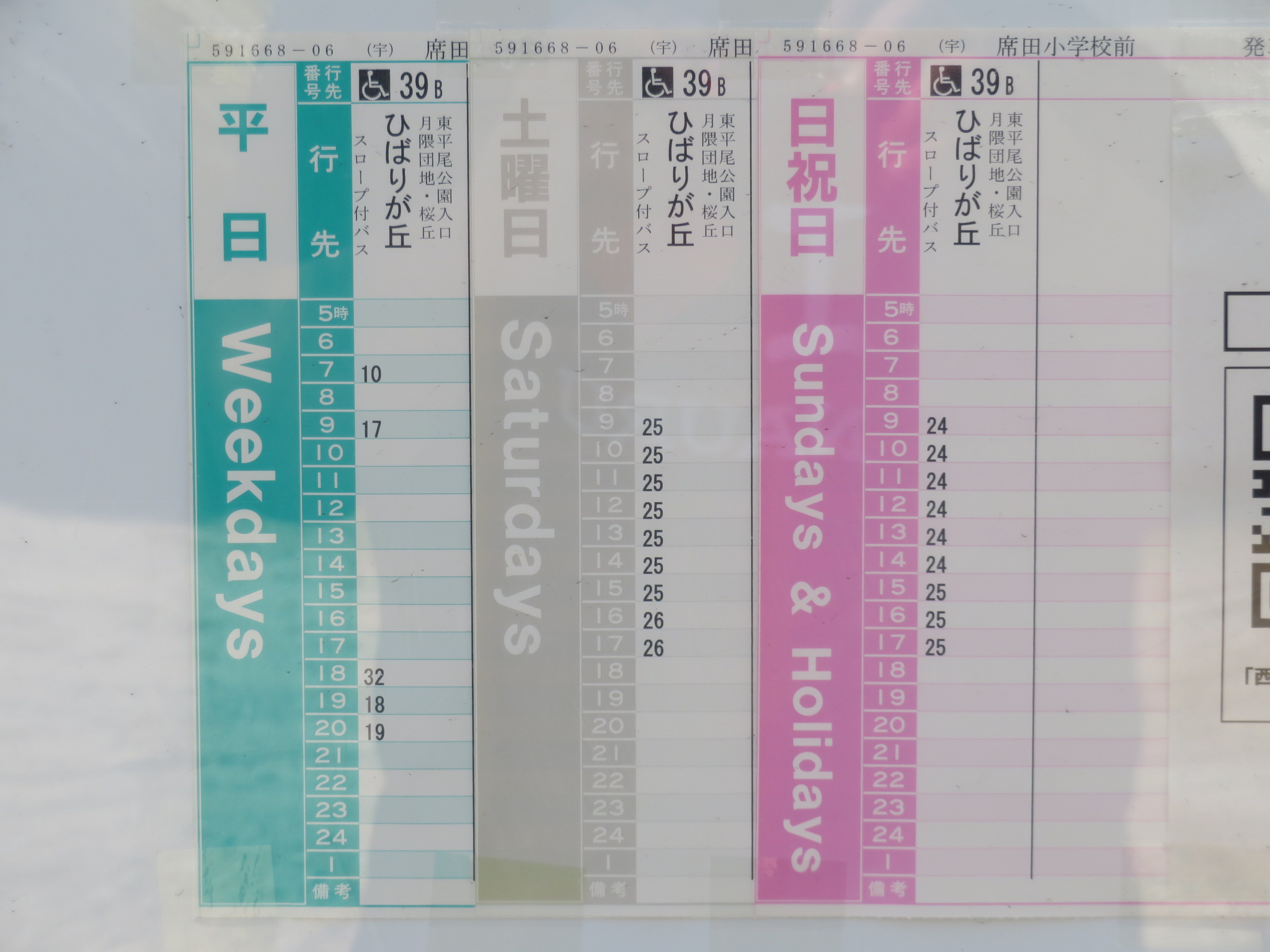 バス停の鉄板も、時刻表の行先も、「ひばりが丘」表記ですが、