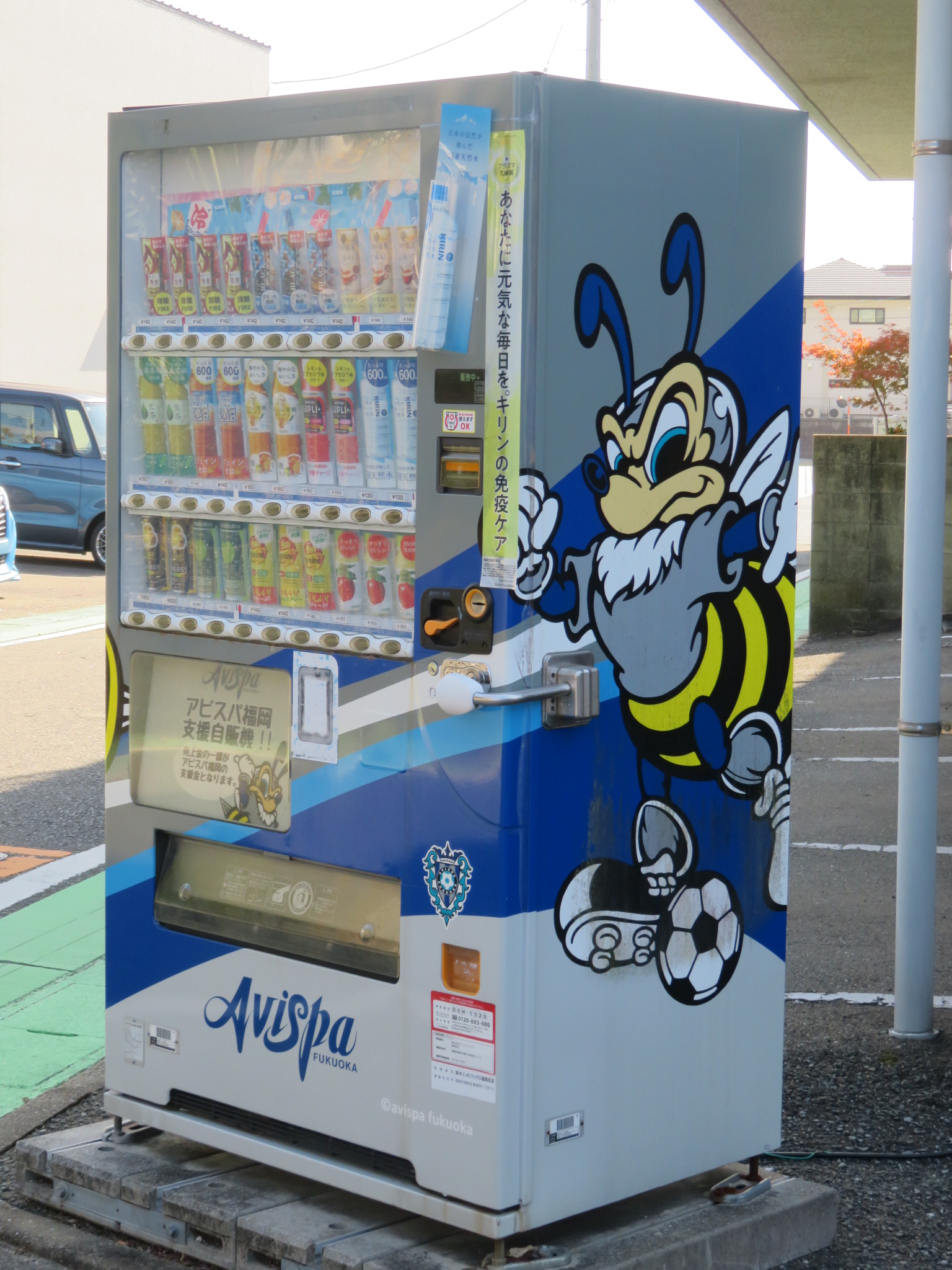 スタジアムが近くにあるためか、アビスパを応援する自販機も目にしました。