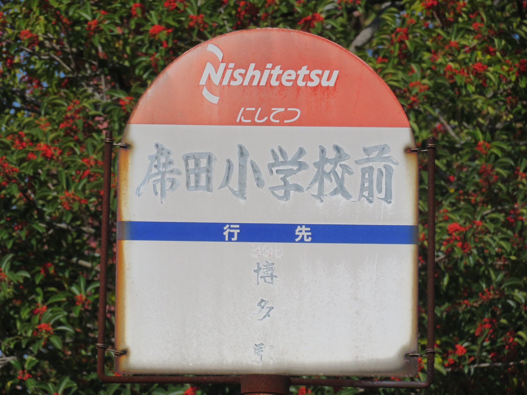 今年最後の掲載バス停は、席田小学校前です。