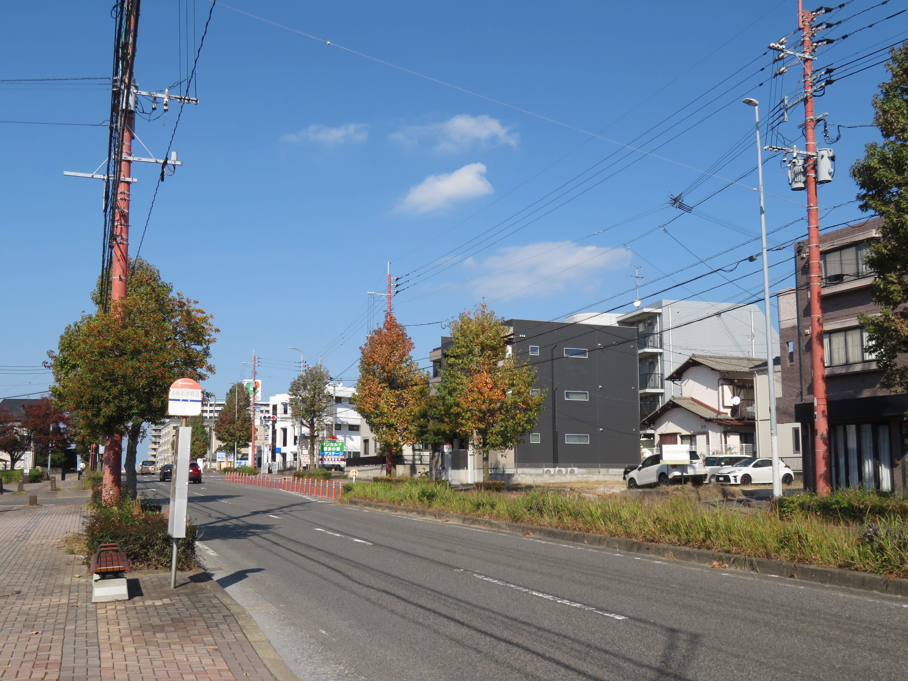 一見なんてことないバス停とそのまわりも、視点を変えれば観光資源。そんな思いで福岡のバス停を取り上げ、ご紹介する本企画。連載140回目は、福岡市博多区にある「席田小学校前」バス停をご紹介します。