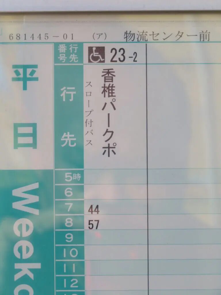 以前ご紹介した「物流センター前バス停」の時刻表
