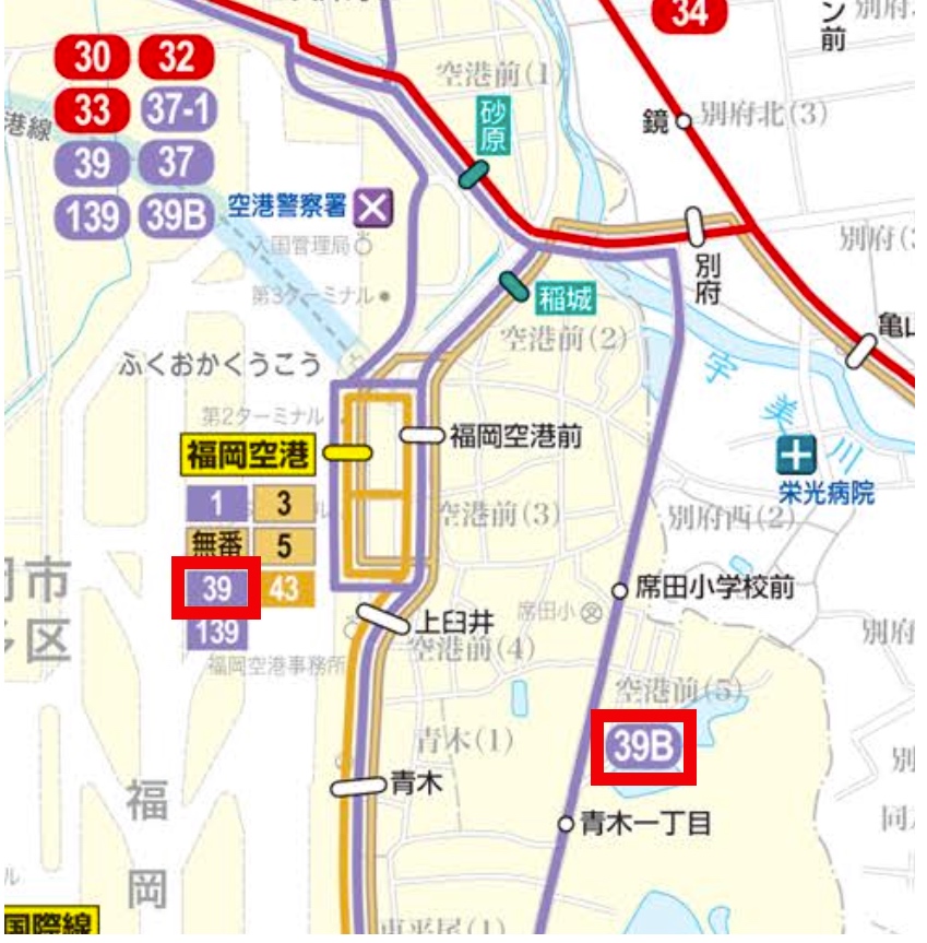 こちらのBは、ひとつ西側の通りを走る「39」の亜種という位置づけでして、他の路線ならば「39‐1」的な枝番で表現されることもありそうです。西鉄バスの福岡都市圏は、路線の数が多いからか、営業区ごとに決裁権を持った人が別々にいるのか、内部事情はよく分かりませんが、「これまでの経緯を踏襲したら、その番号にはならんやろ」という付番が、たまに現れます。具体例を挙げることは、敢えて避けますが(笑)。
