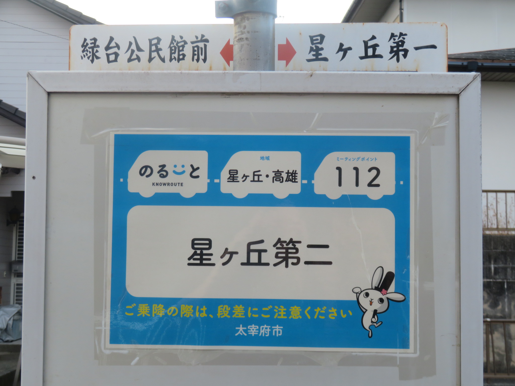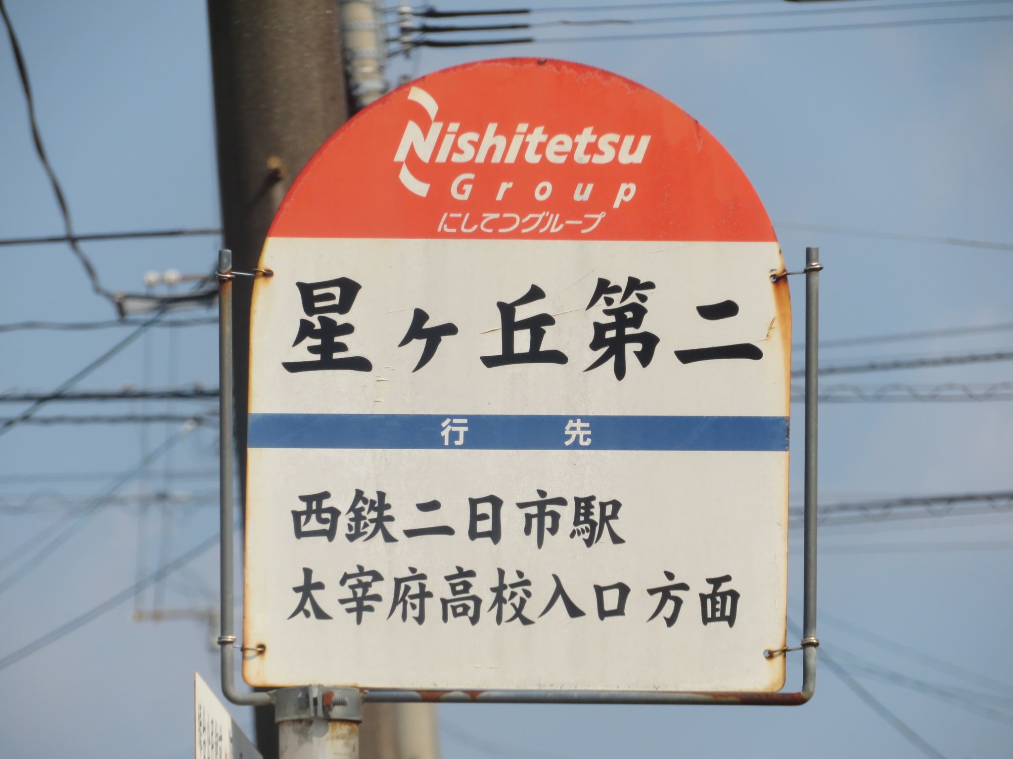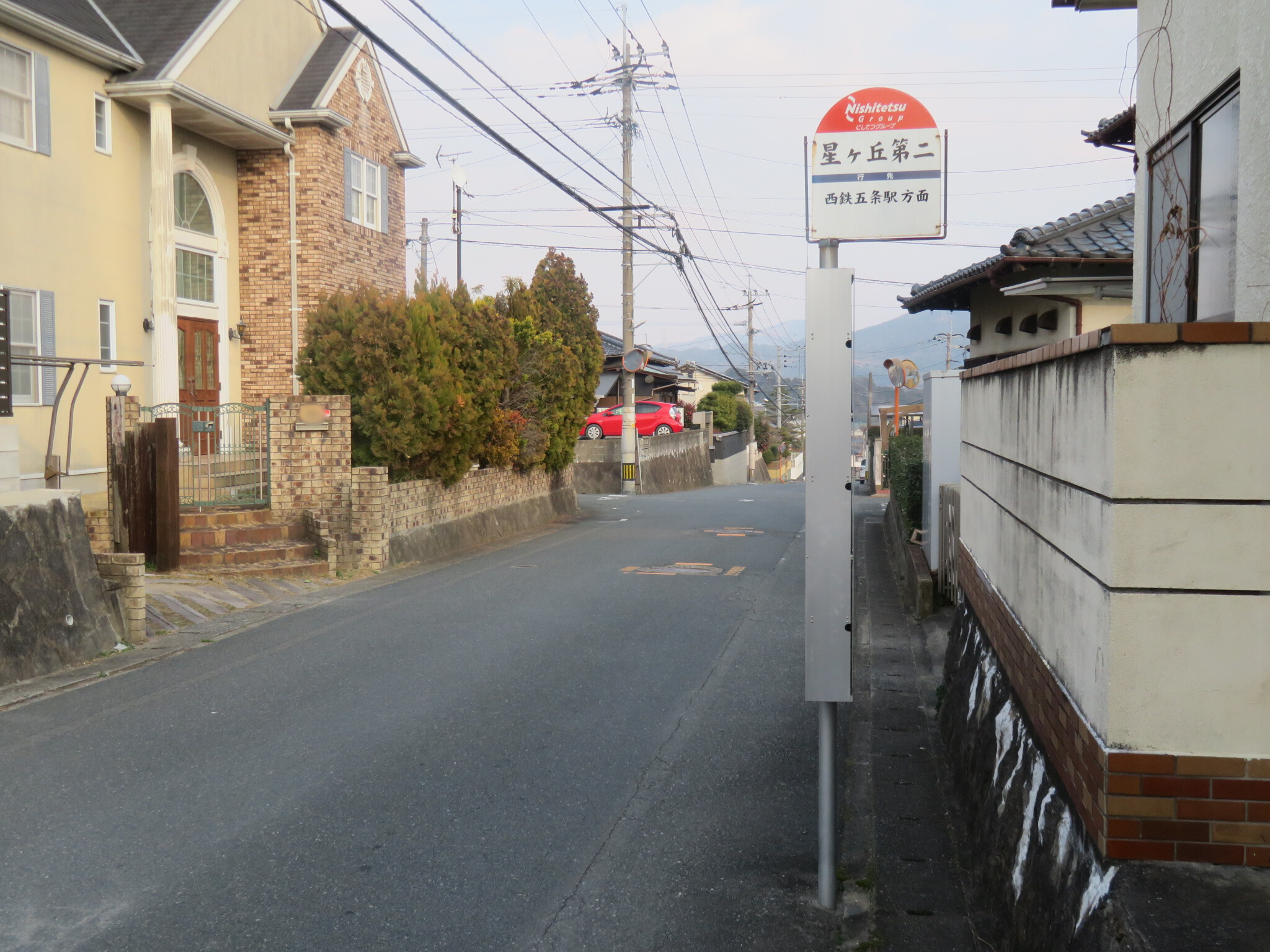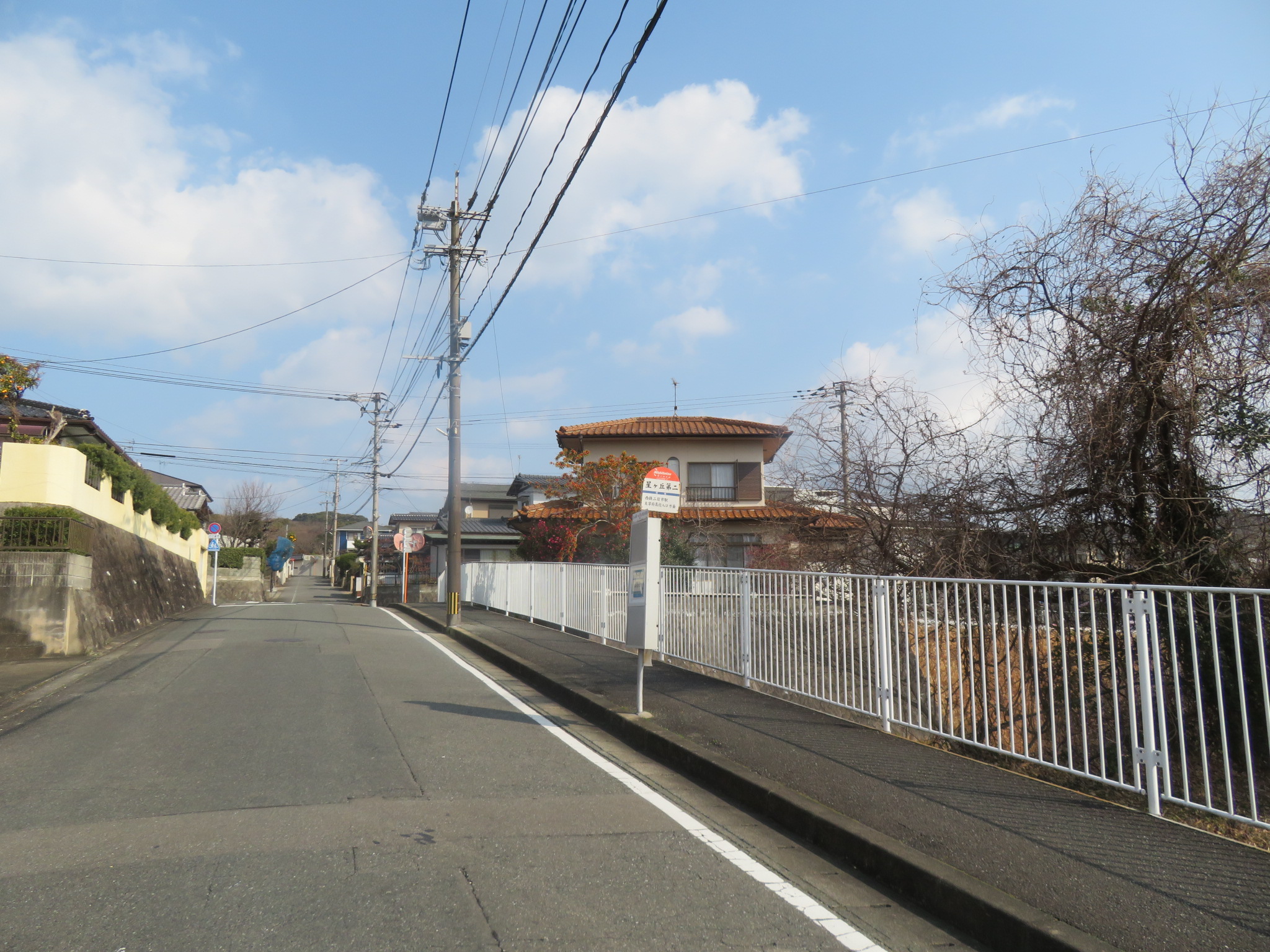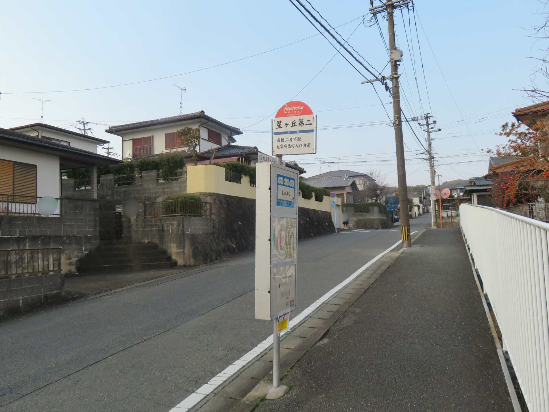 ここは太宰府市の「星ヶ丘第二」バス停です。