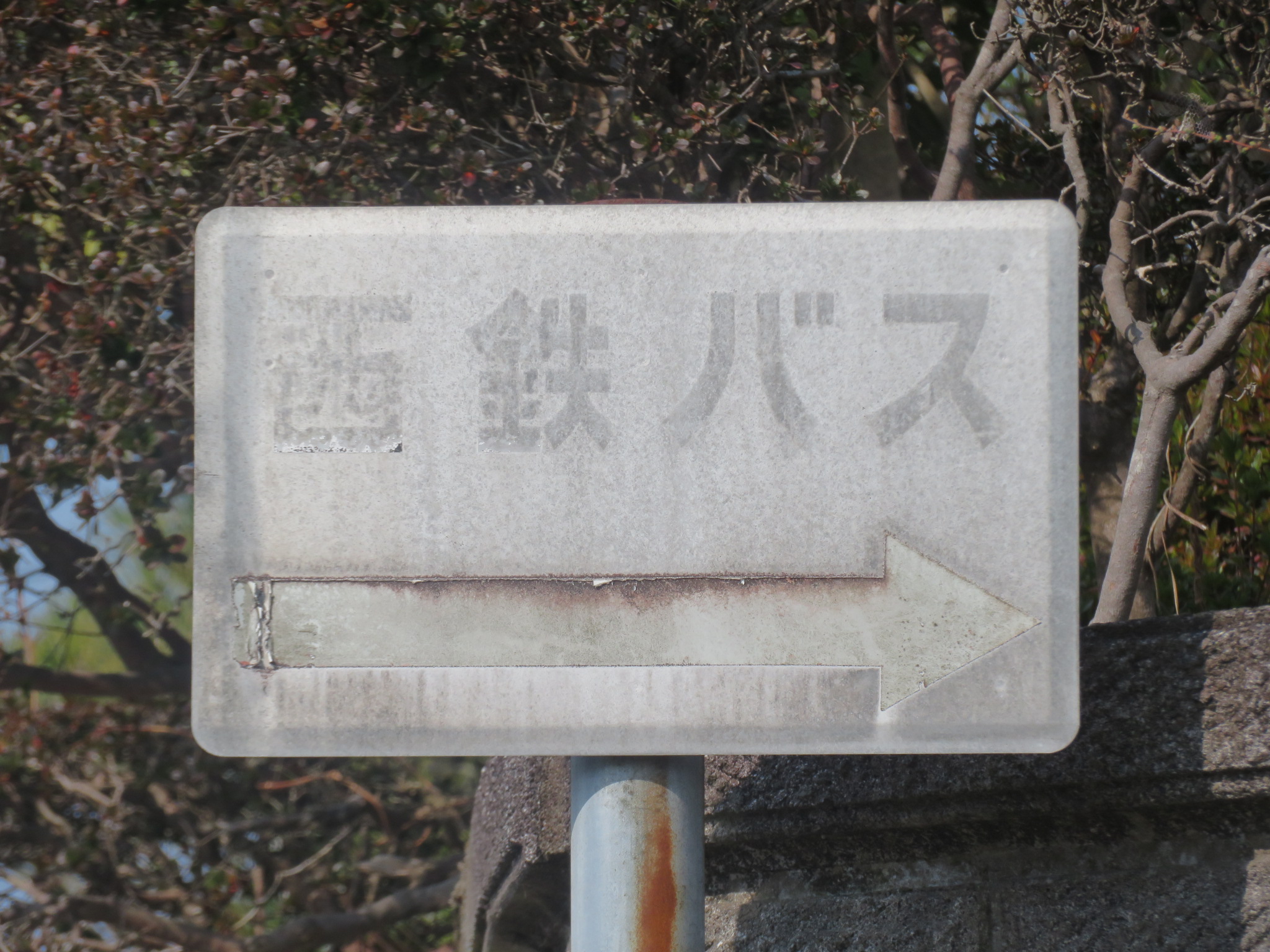「西鉄バス→」と書かれた誘導看板