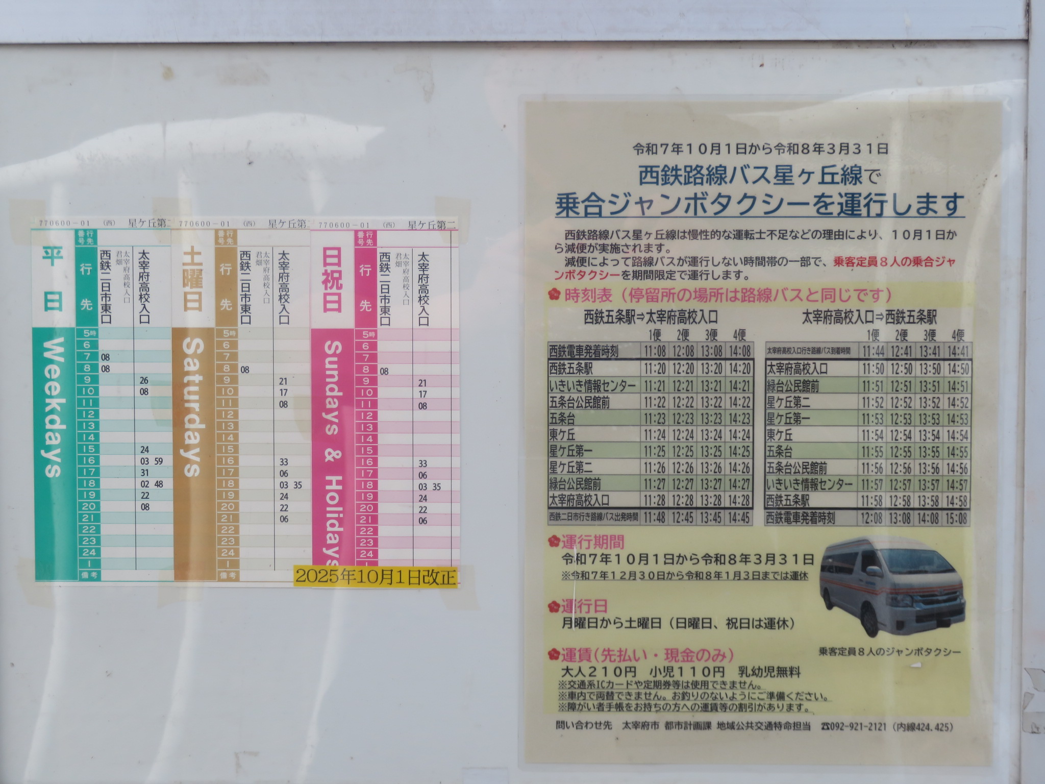 二日市方面バス停には、たくさんの掲示物がありました。
