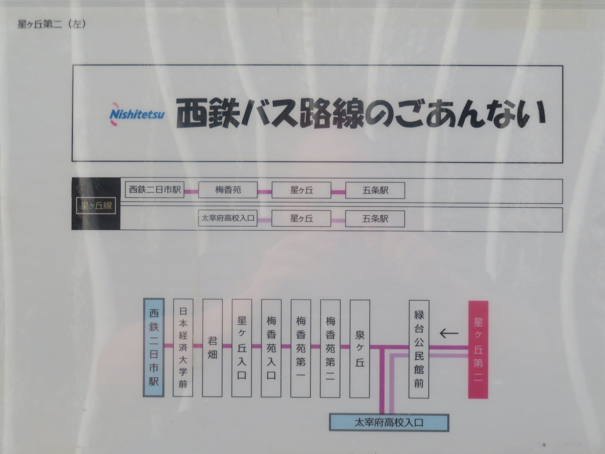 逆方面の、星ヶ丘第二、西鉄二日市駅方面は、