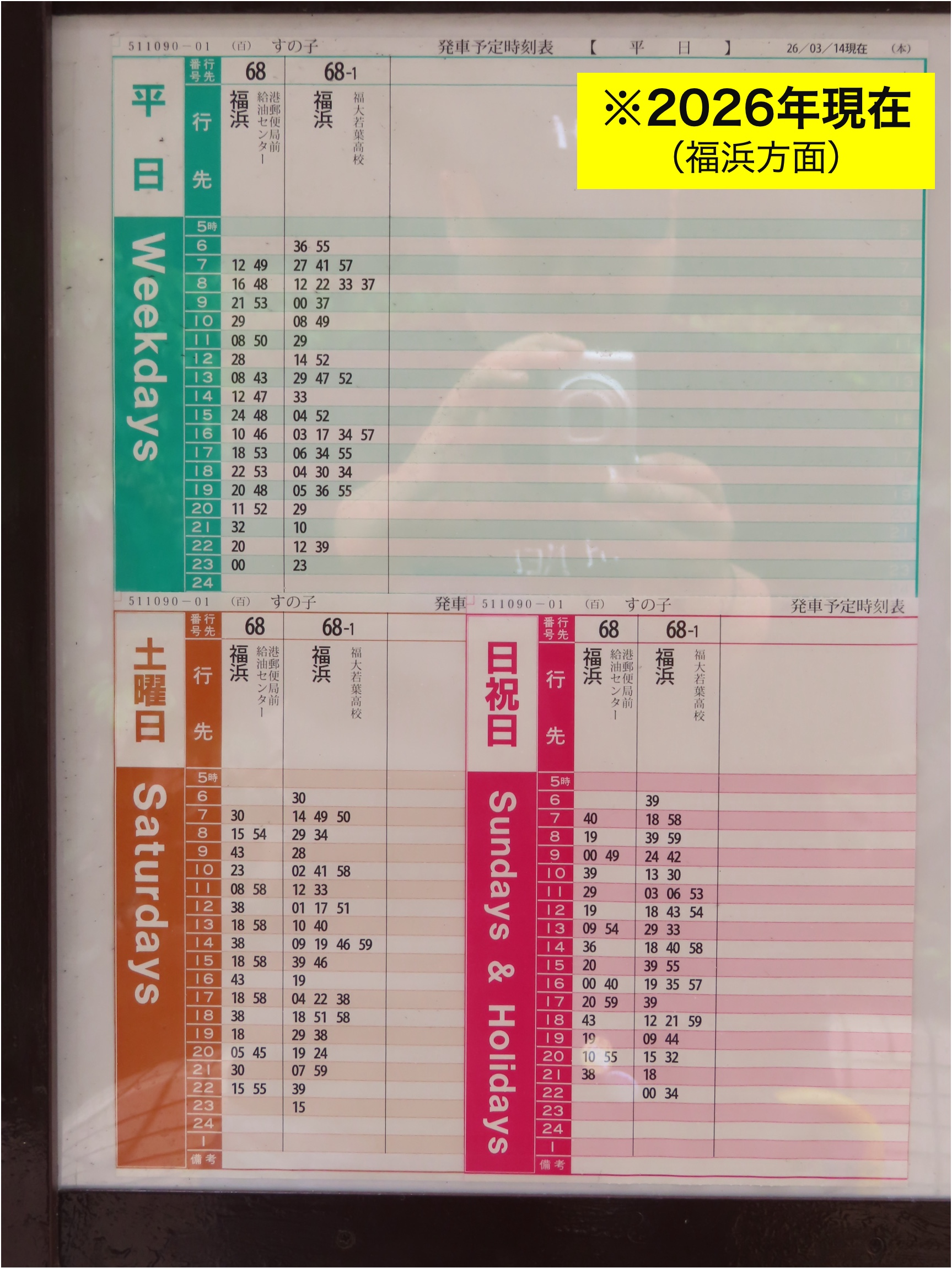 そしてこれが、2026年3月改正の時刻表、最新のものです。