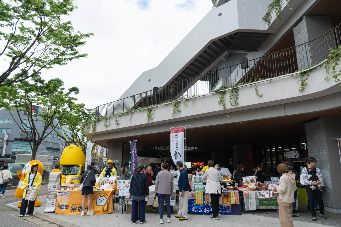 イベント当日、到着してまず来場者の目を引いたのが、1階で展開されていた物産展・観光PRブースです。